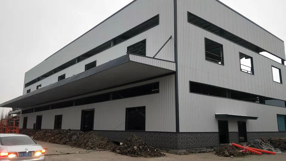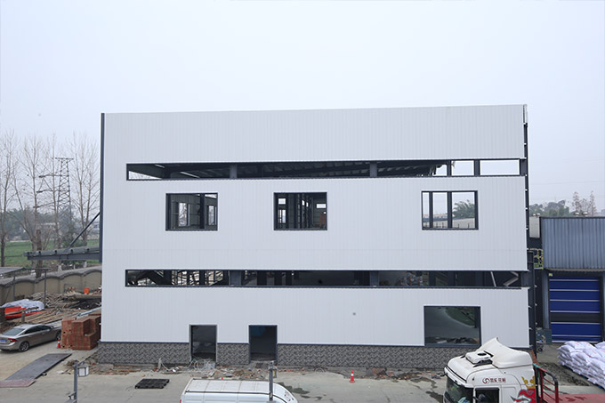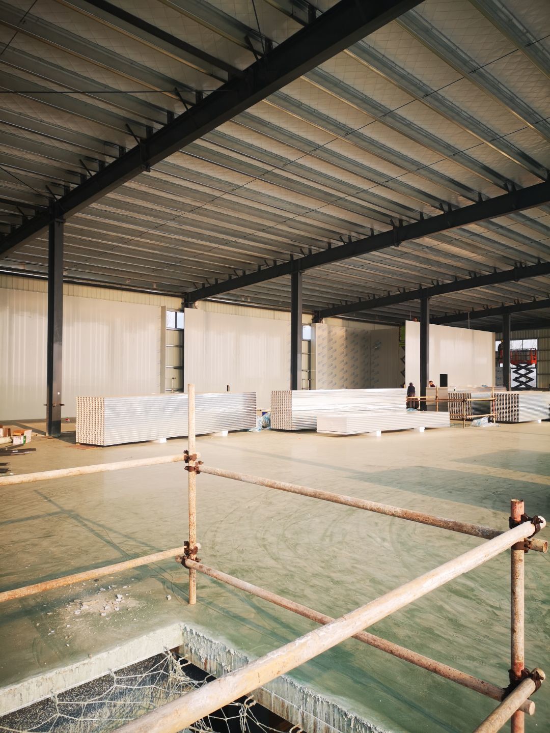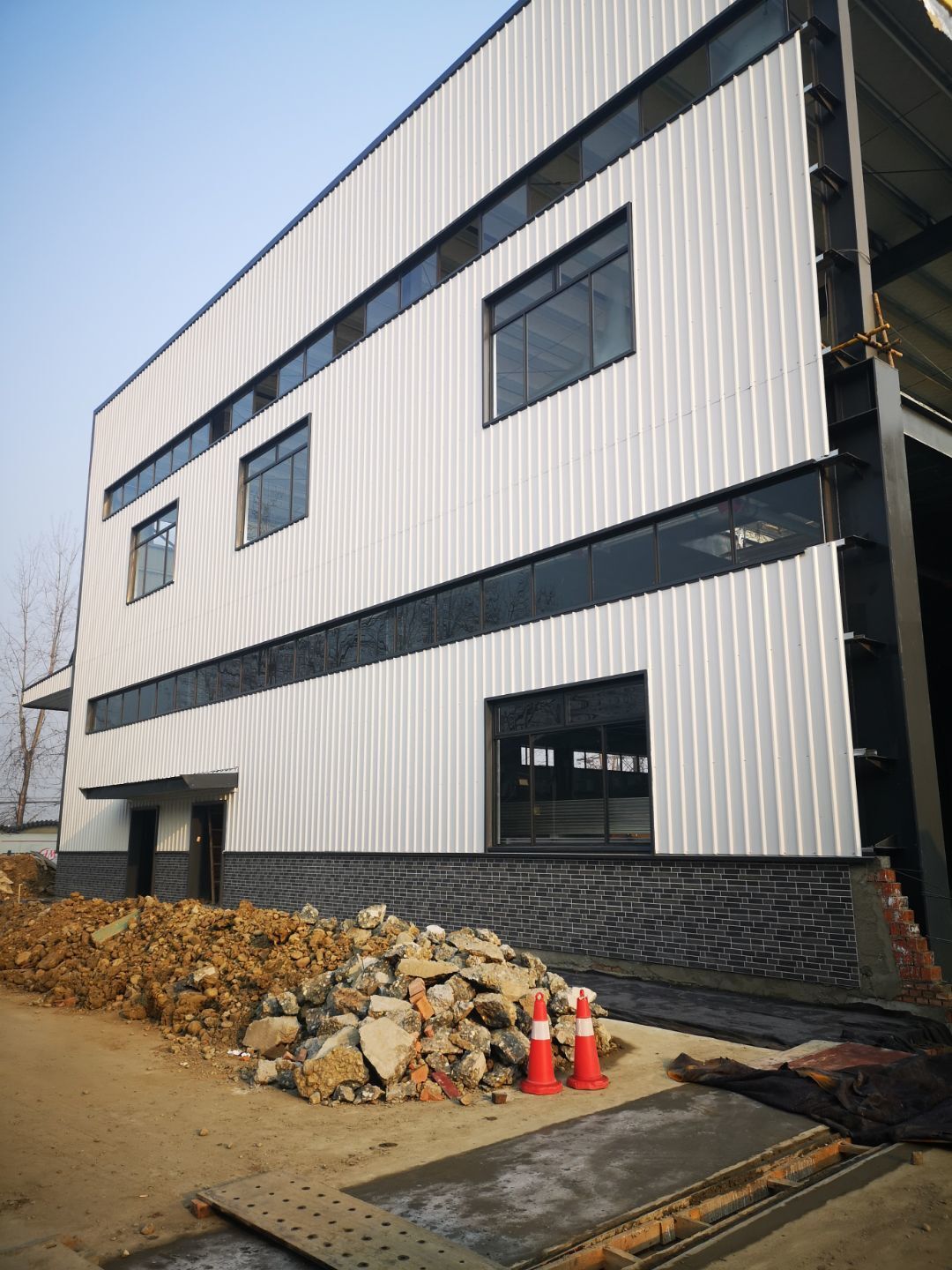 廠房外觀裝玻璃,內裝彩鋼板到現場,隔斷開始施工