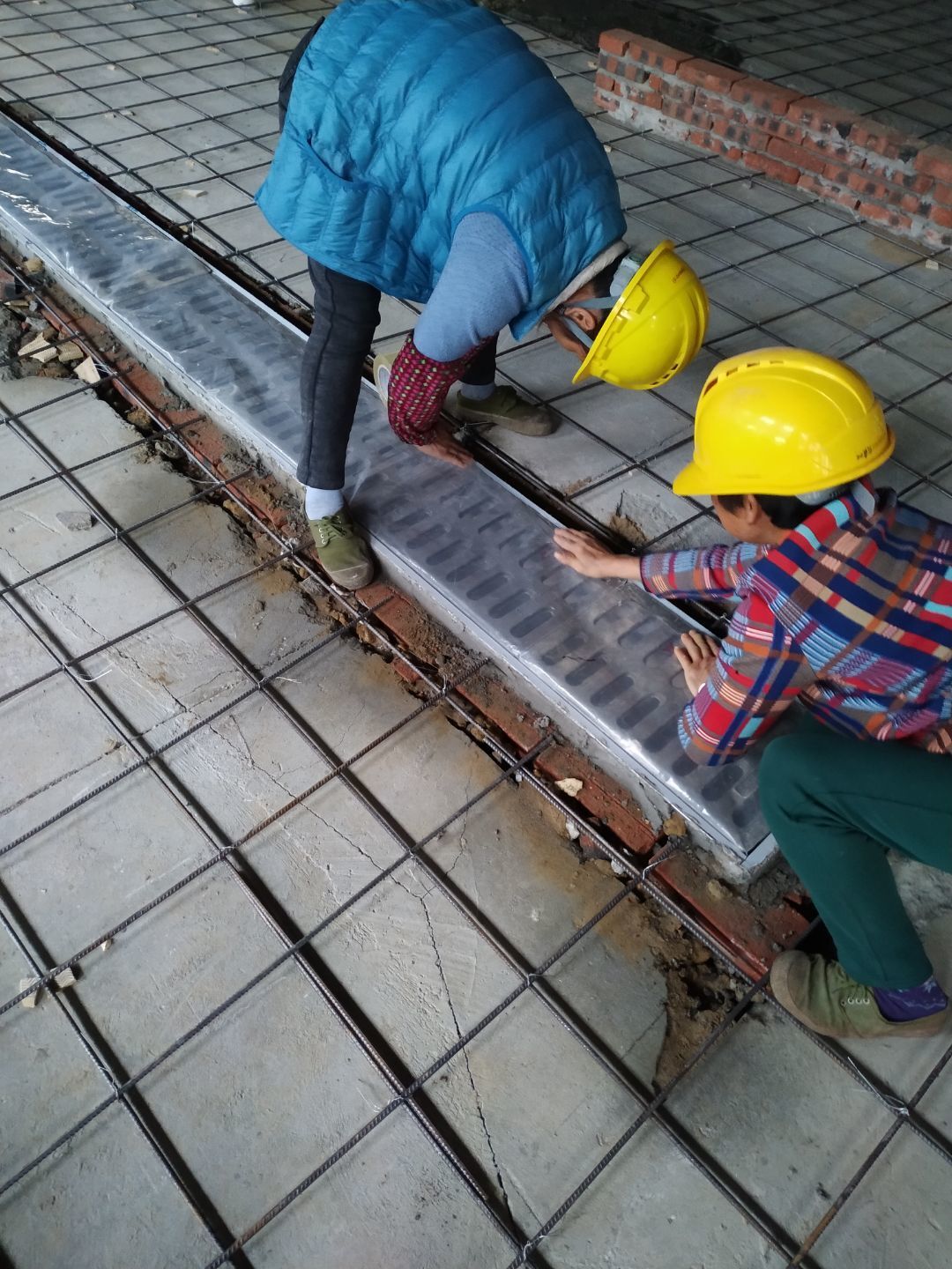 排水溝砌磚完成75%,瓷磚、地磚、排水管、防水材料、排水溝折邊件和水篦子到場卸貨。