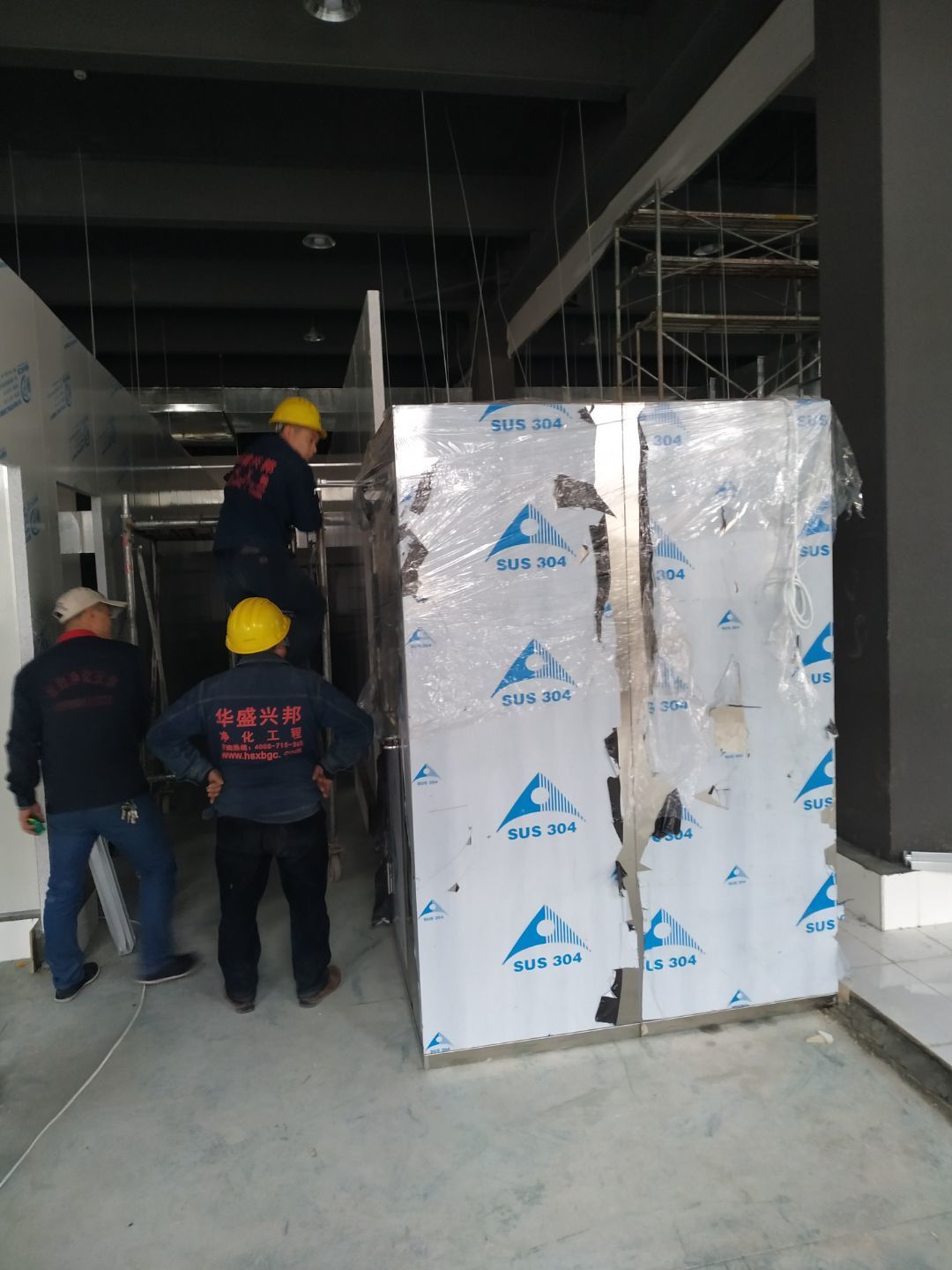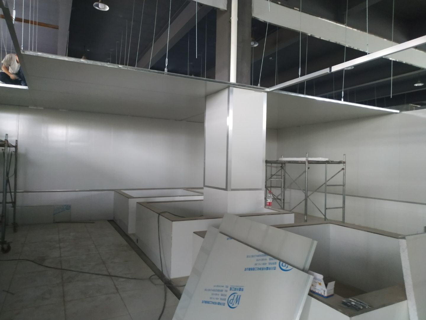 彩鋼板墻板安裝完成70%,頂板安裝完成30%,風管安裝完成70%。