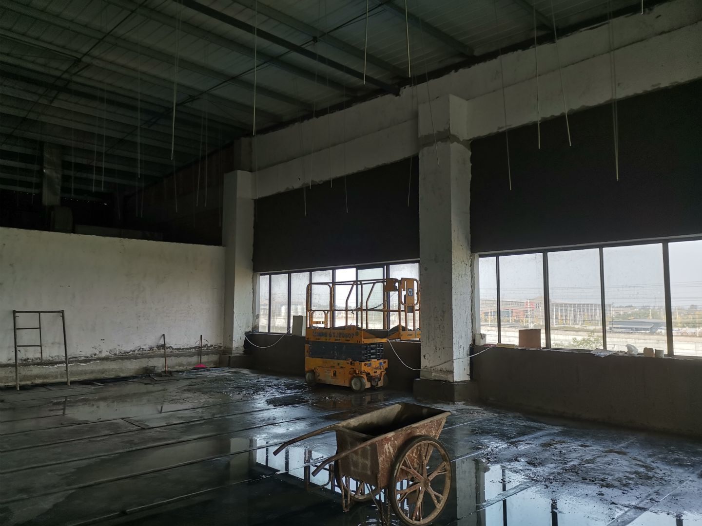 品品食品廠三樓廠房局部改造工程A區:1、擋水墻砌筑完成85%(剩余預留設備口,待設備進場后再行施工); 2、貼磚區域墻面鑿毛完成100%,表面刷膠處理完成100%,抹灰完成100%墻面貼磚完成100%,地面石材鋪貼完成10%; 3、防水保護層完成100%; 4、土建墻體拆除完成100%; 5、場地清理。