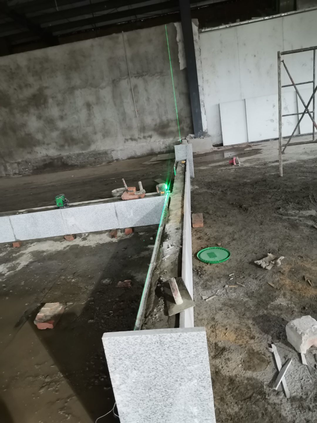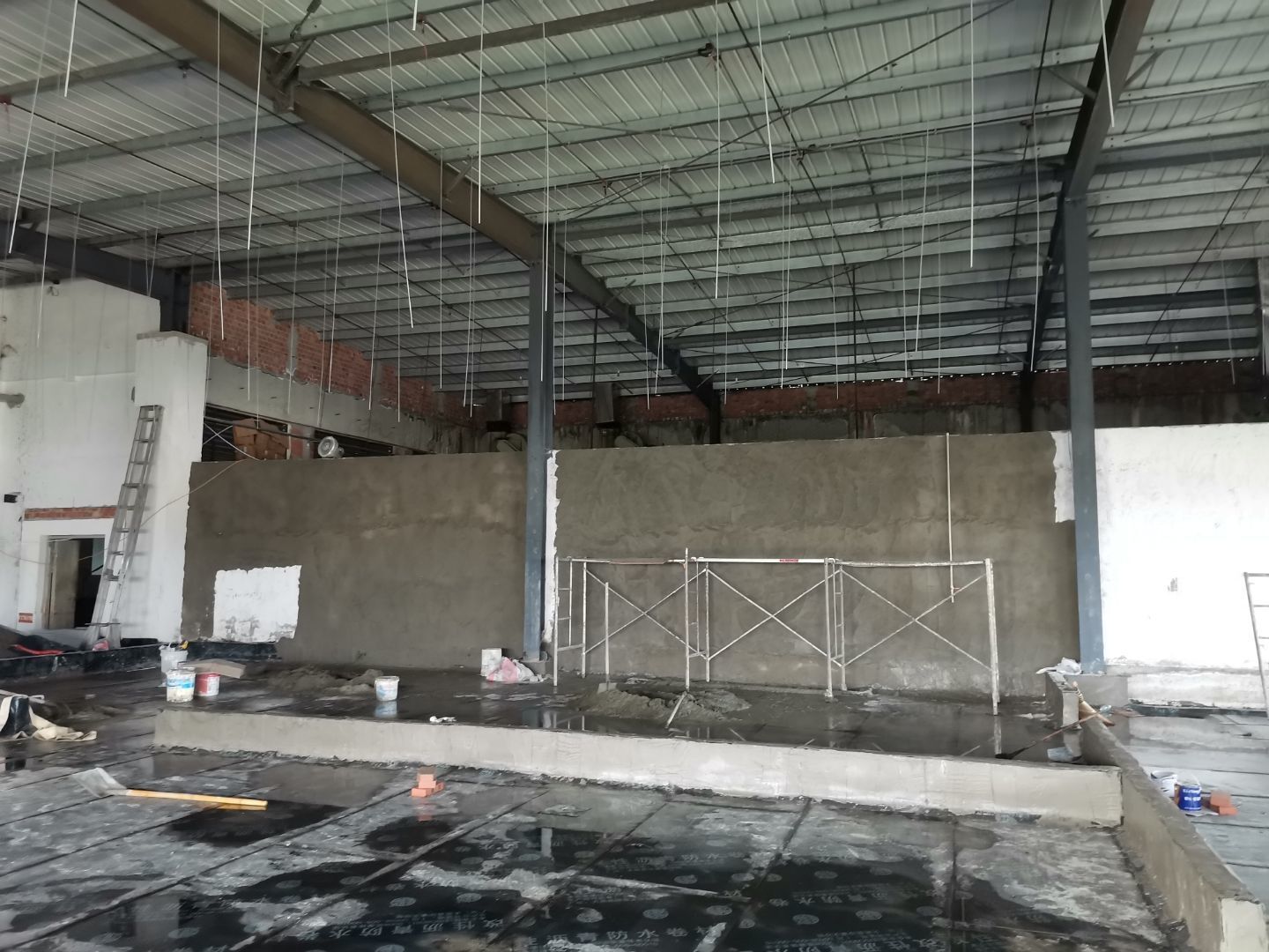 1、擋水墻砌筑完成85%(剩余預留設備口,待設備進場后再行施工); 2、貼磚區域墻面鑿毛完成100%,表面刷膠處理完成100%,抹灰完成100%; 3、防水保護層完成45%; 4、土建墻體拆除完成70%; 5、閉水試驗完成;