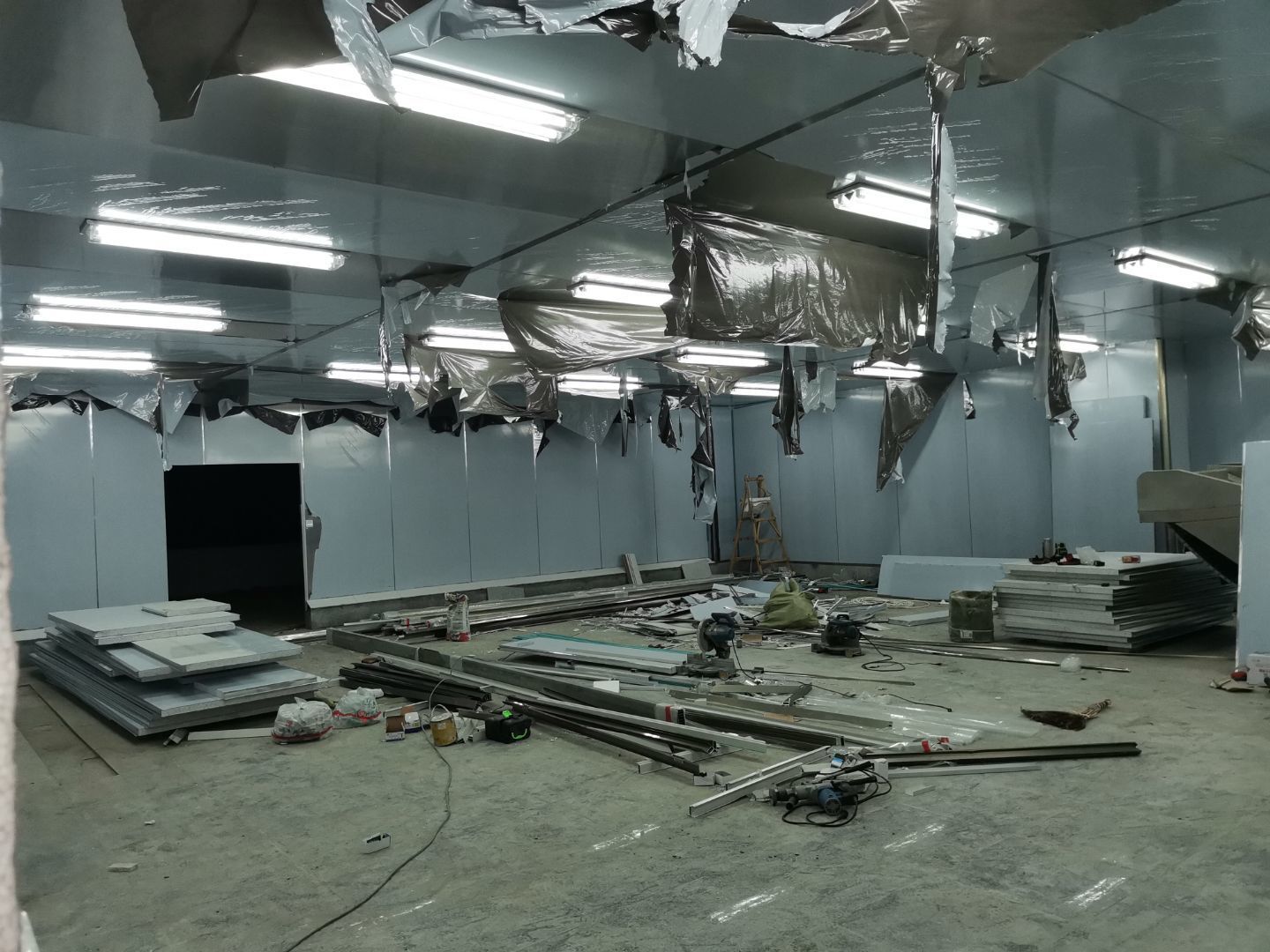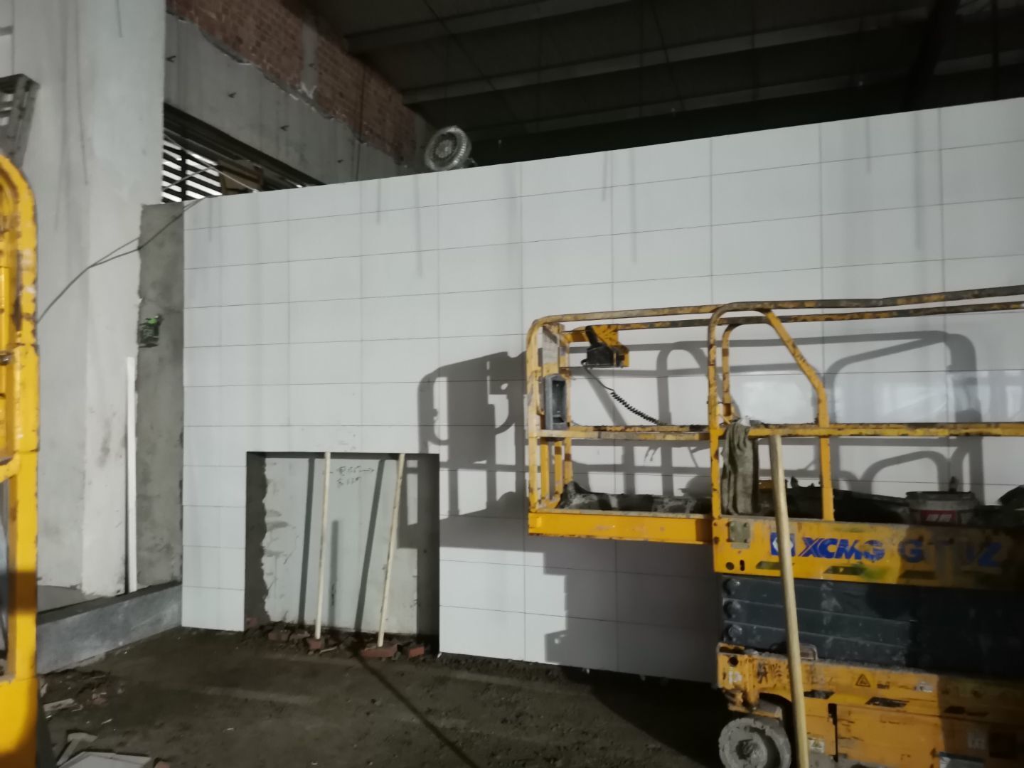 品品食品廠三樓廠房改造工程A區20201129工作匯報: 1、擋水墻砌筑完成85%(剩余預留設備口,待設備進場后再行施工); 2、地面石材鋪貼完成90%; 3、凈化墻板安裝完成90%; 4、二樓添加劑庫房墻板安裝完成70%(待材料進場后陸續開展); 5、一樓墻體拆除完成100%; 6、物料卸車處損壞道路地坪破除完成100%; 7、屋面設備基礎基層處理完成100%,防水完成100%; 8、解凍庫二次防水完成100%,保護層完成100%; 9、一樓墻面膩子完成20%; 10、場地清理。