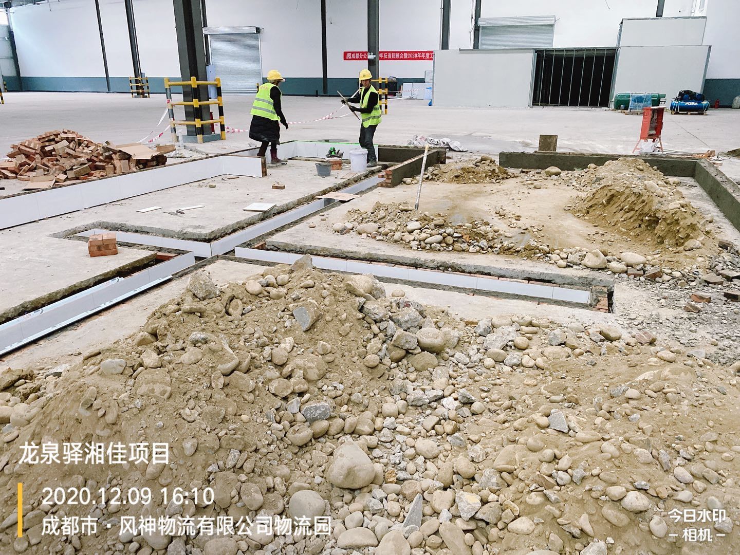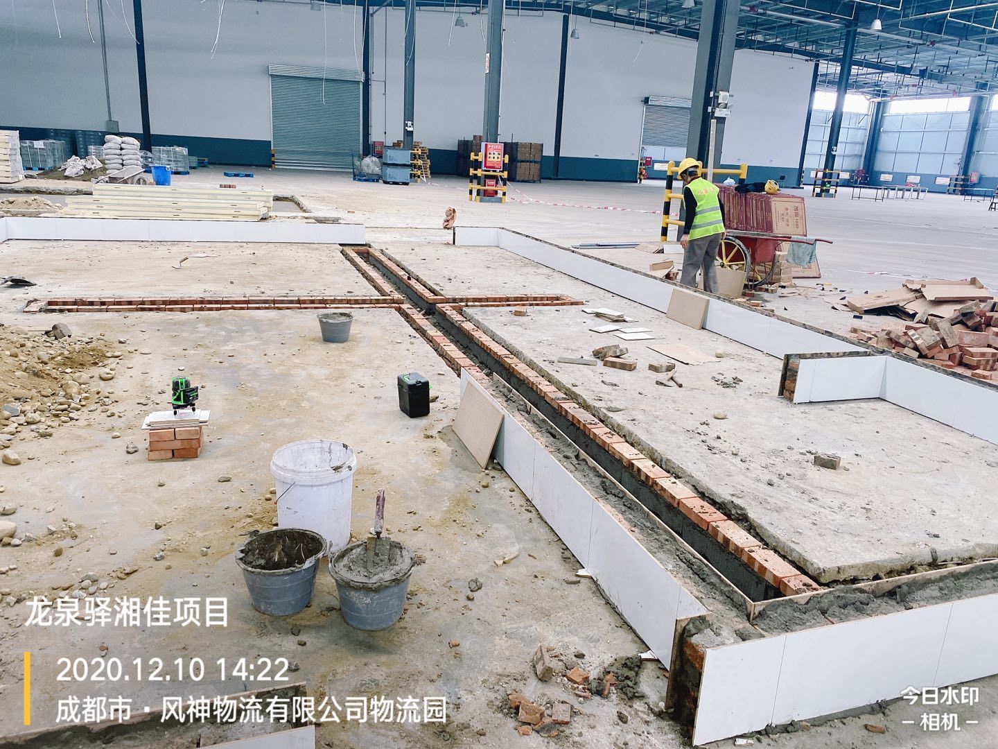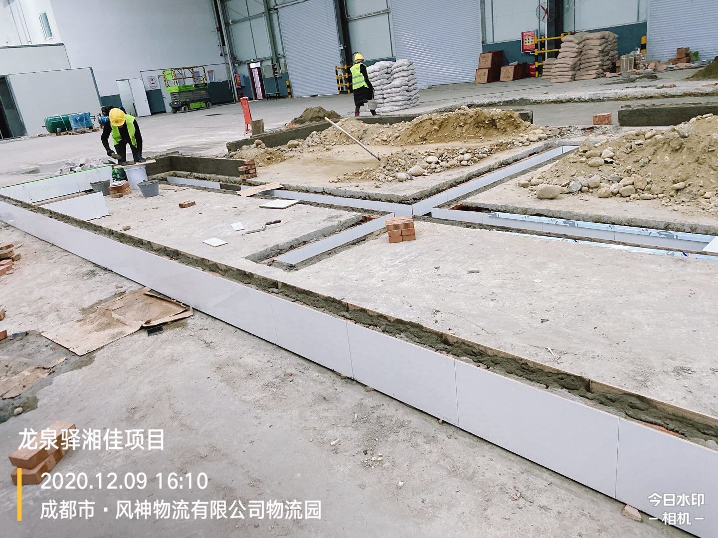 車間擋水墻瓷磚鋪貼完成70%,排水管埋設(shè)、土方回填完成,剩余土方清運(yùn)離場(chǎng)完成60%。