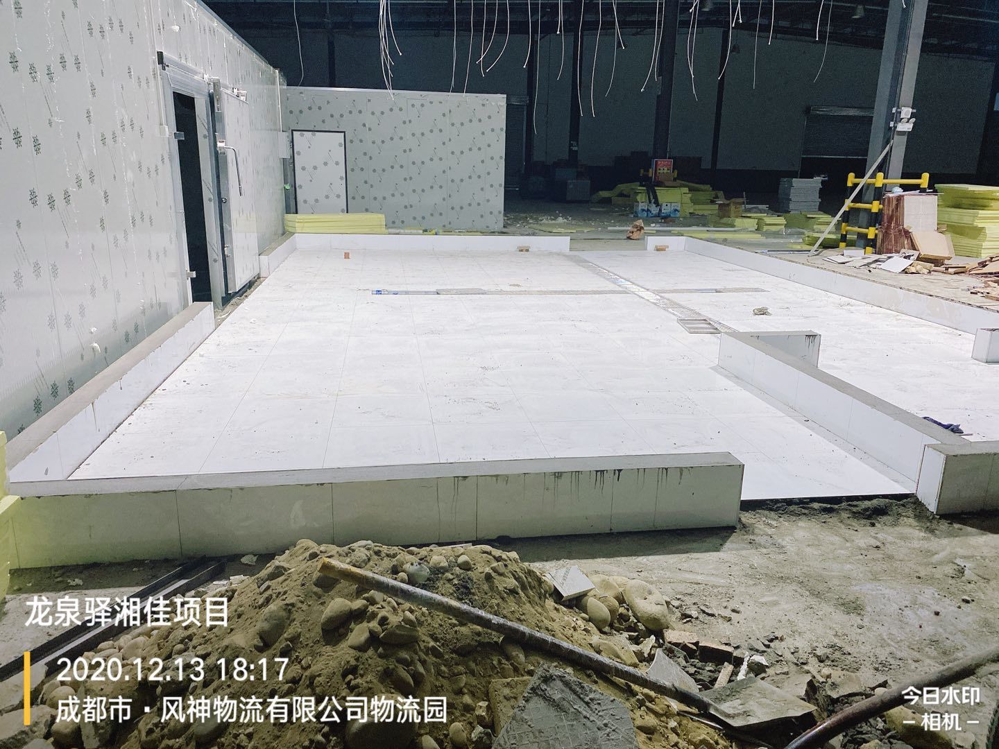 前處理間地板磚施工完成,回填土二次澆水夯實(shí)。