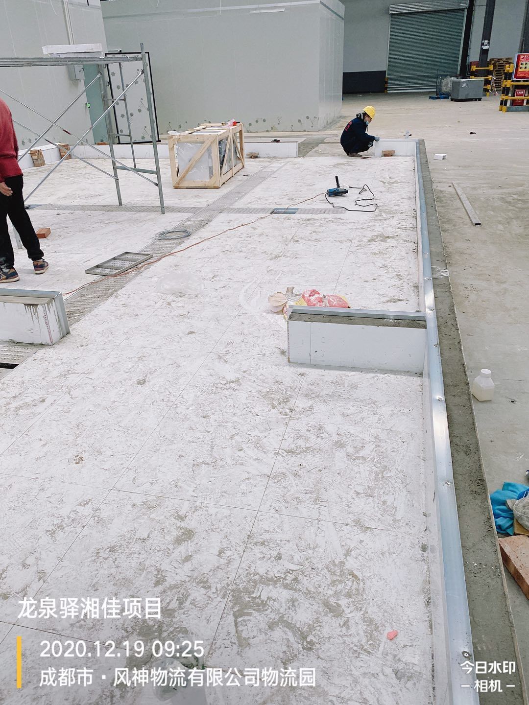 墻體打膠,地面瓷磚鋪設(shè)