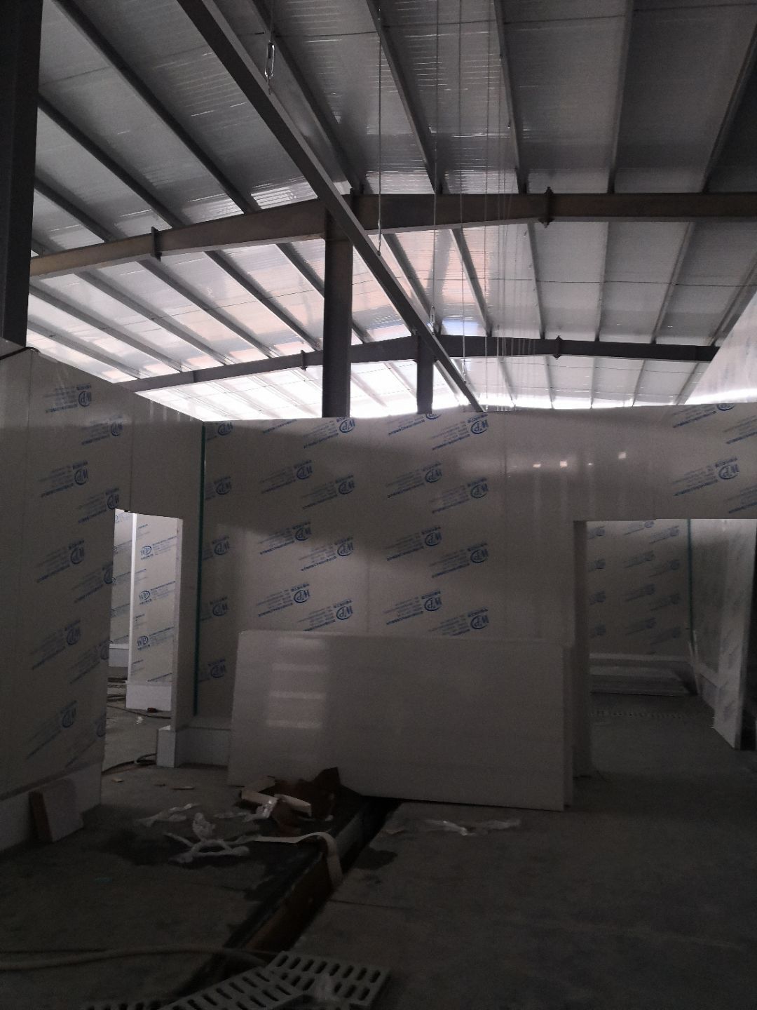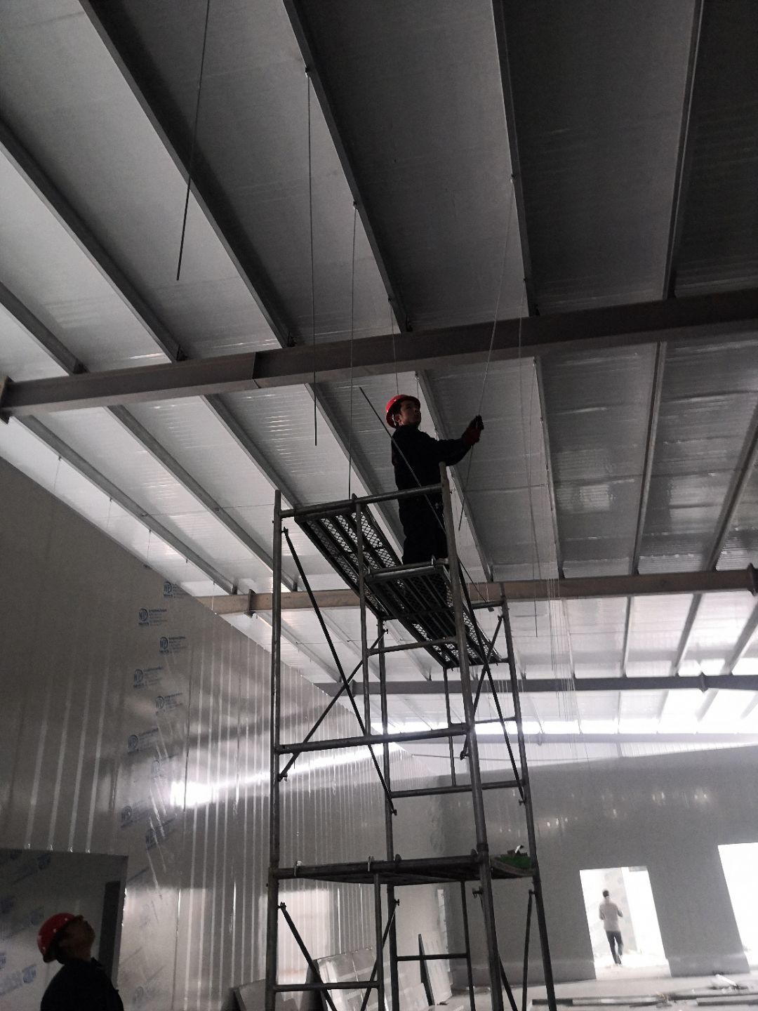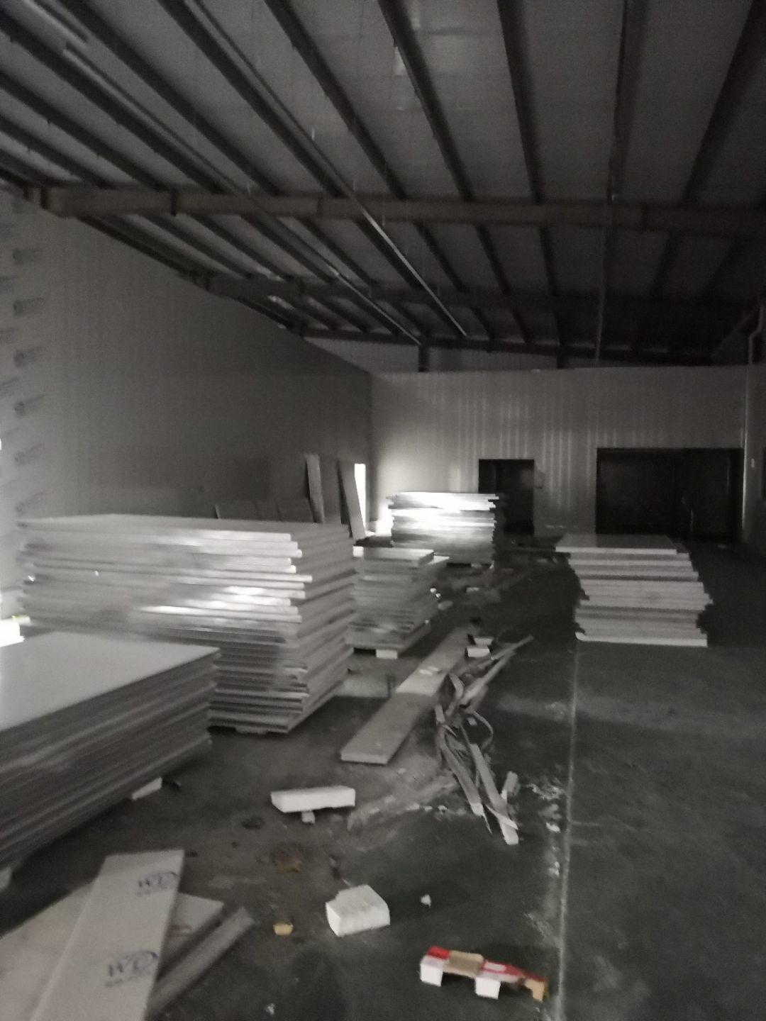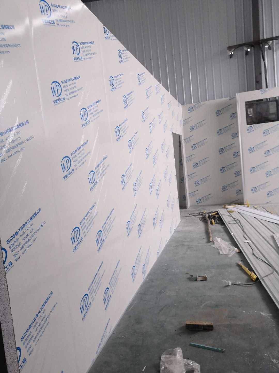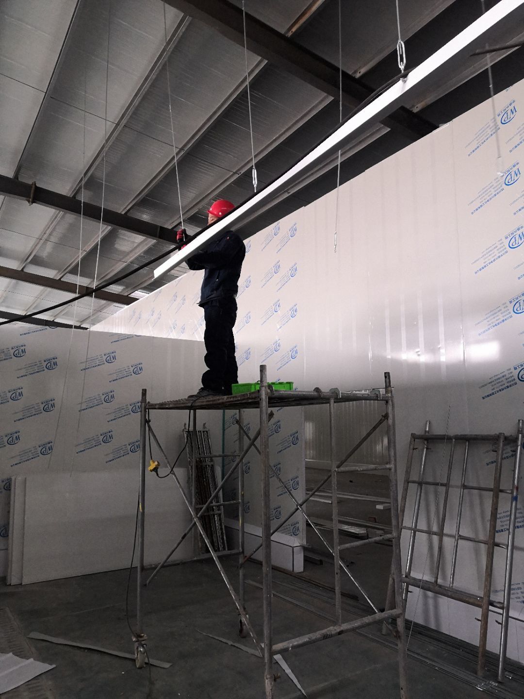 1、車間立墻板,做門,裝門;2、電工施工、開盒子、穿線、裝燈