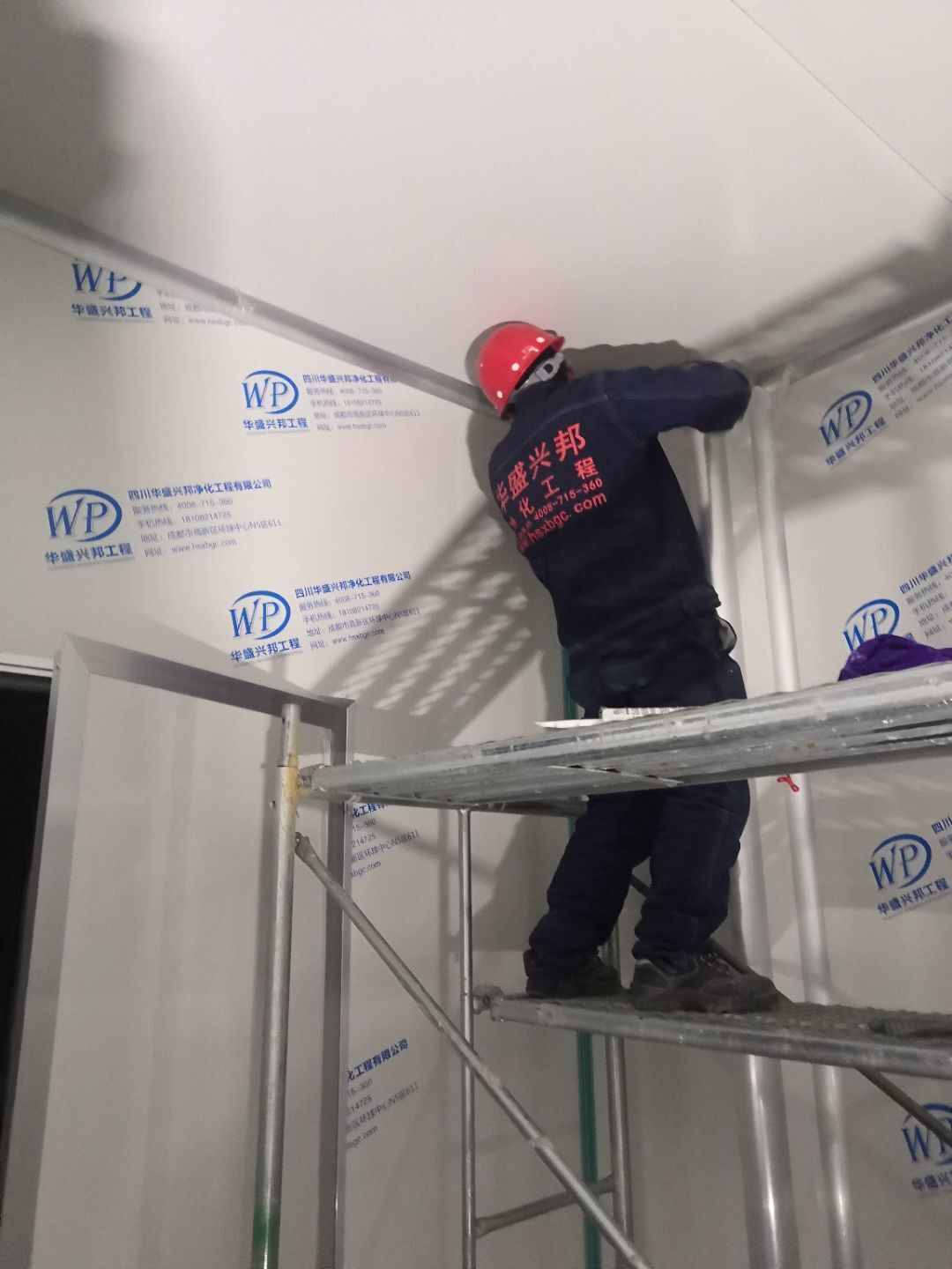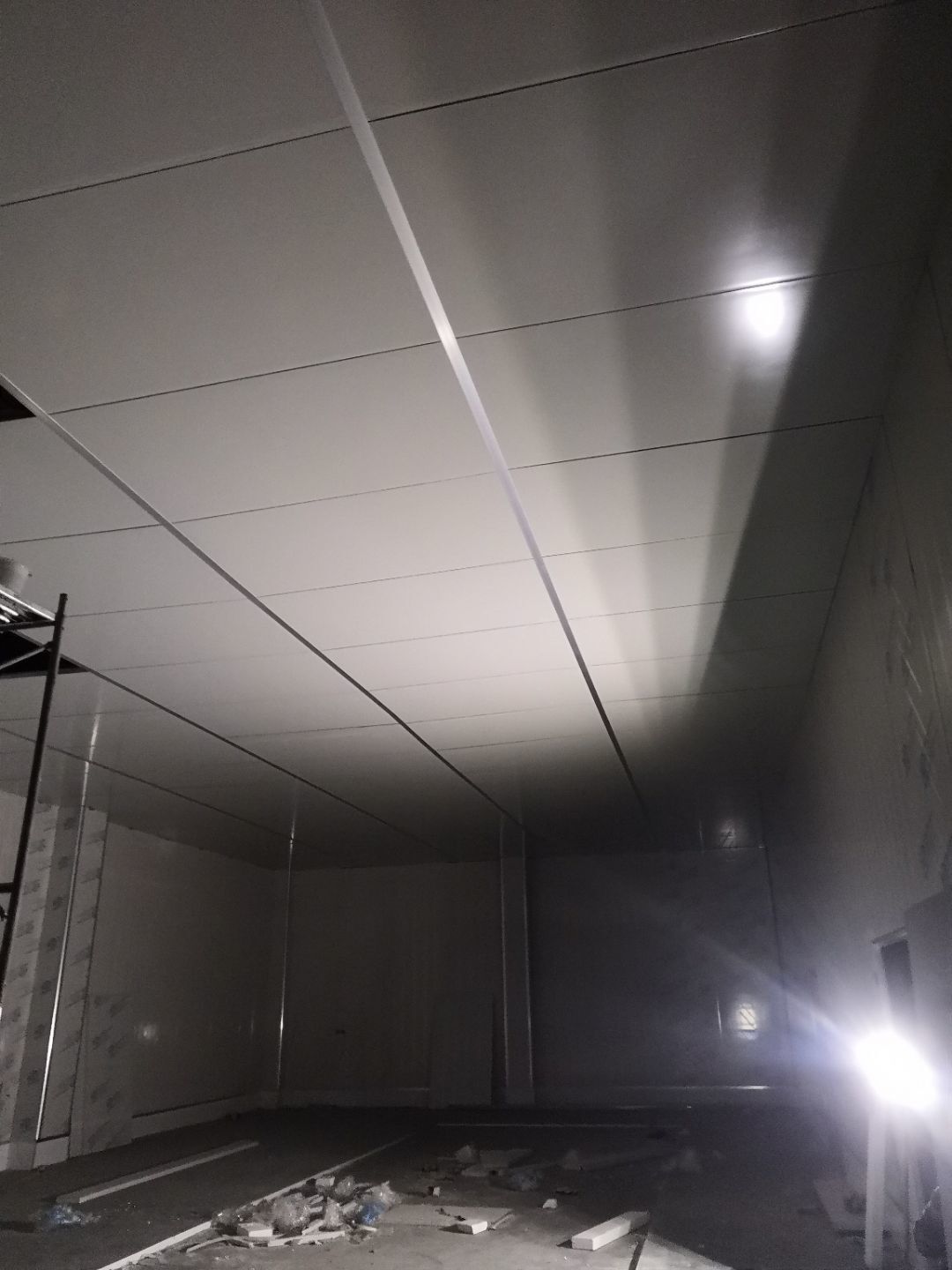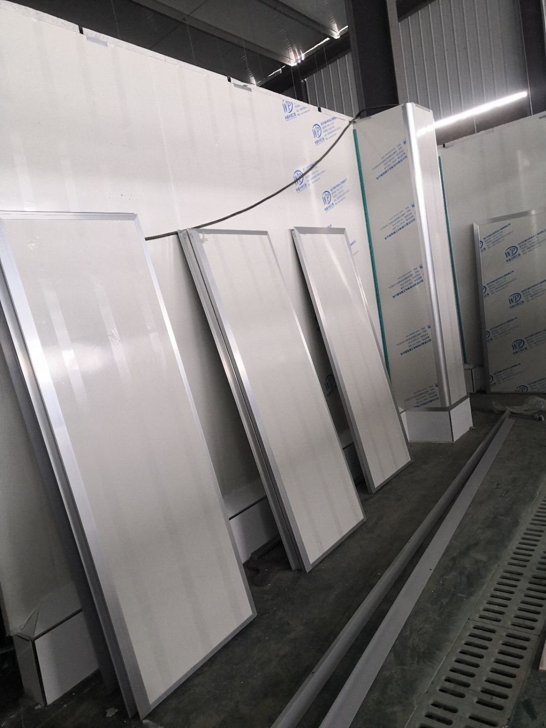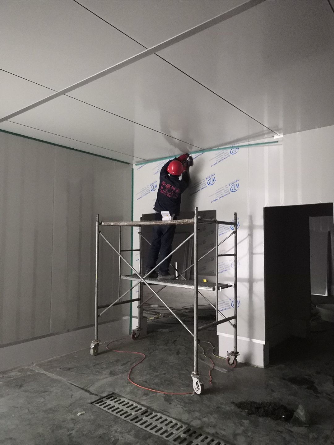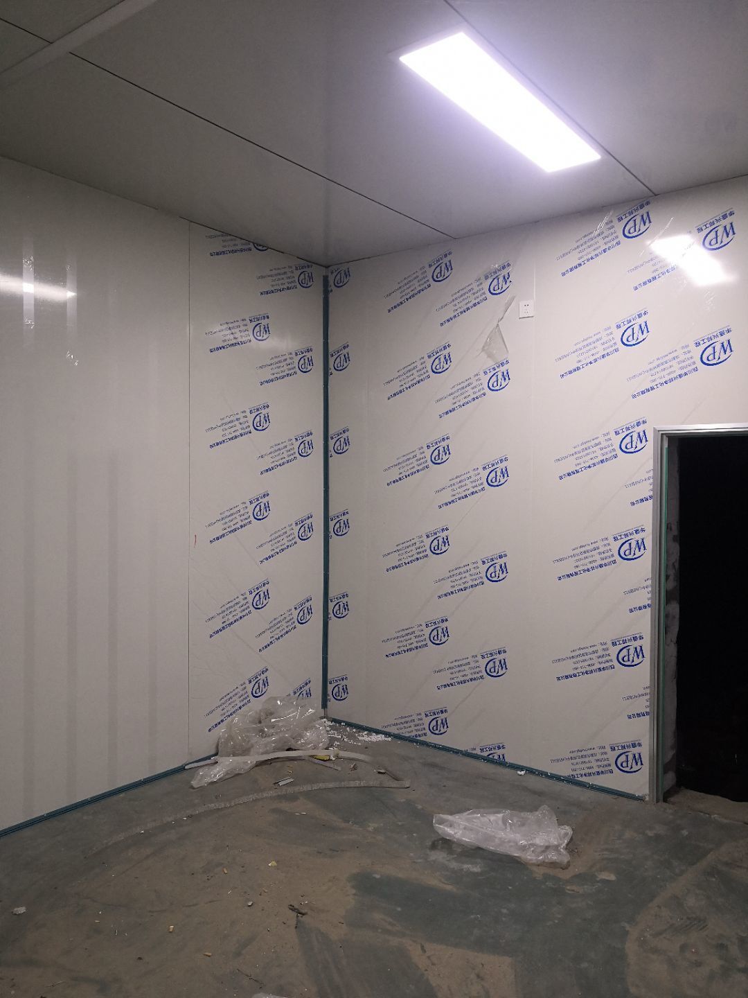 1、車間立墻板,做門,裝門;2、電工施工、開盒子、穿線、裝燈
