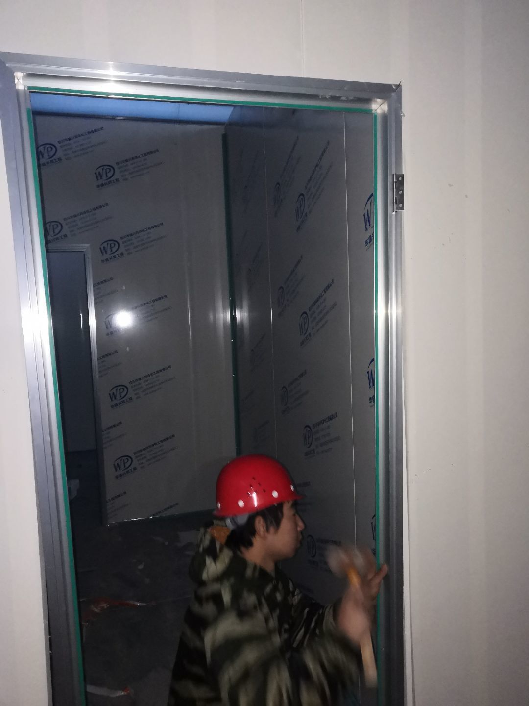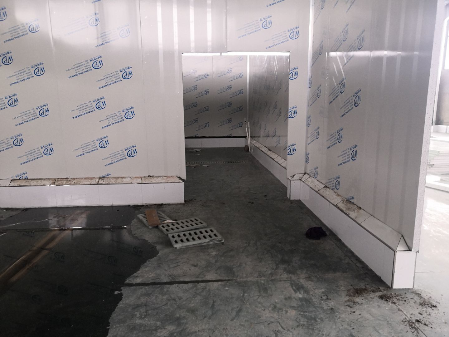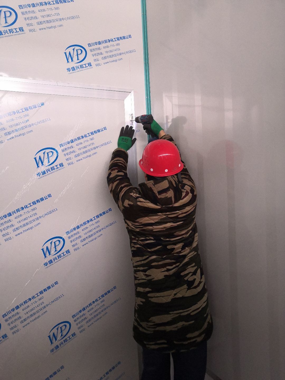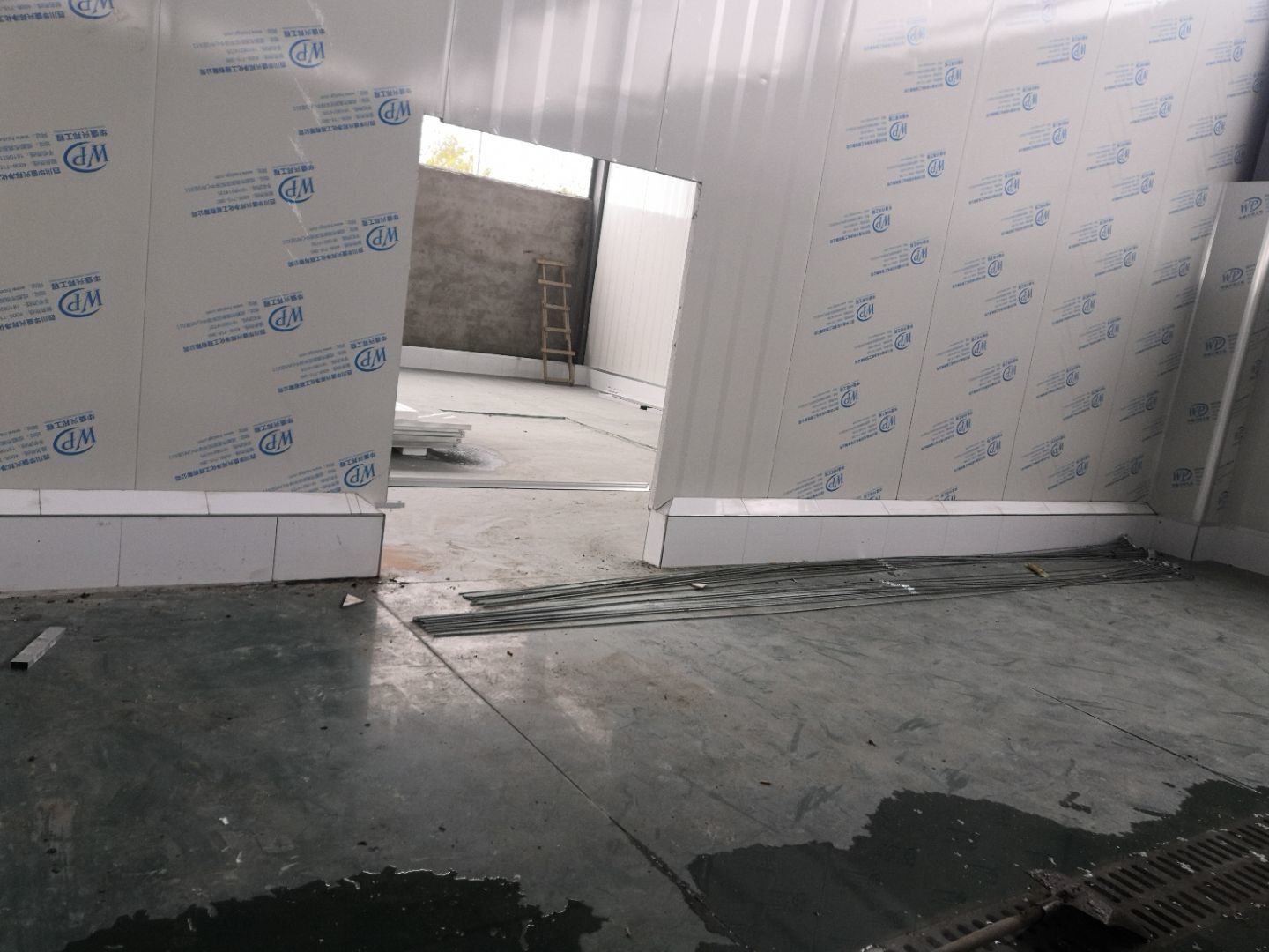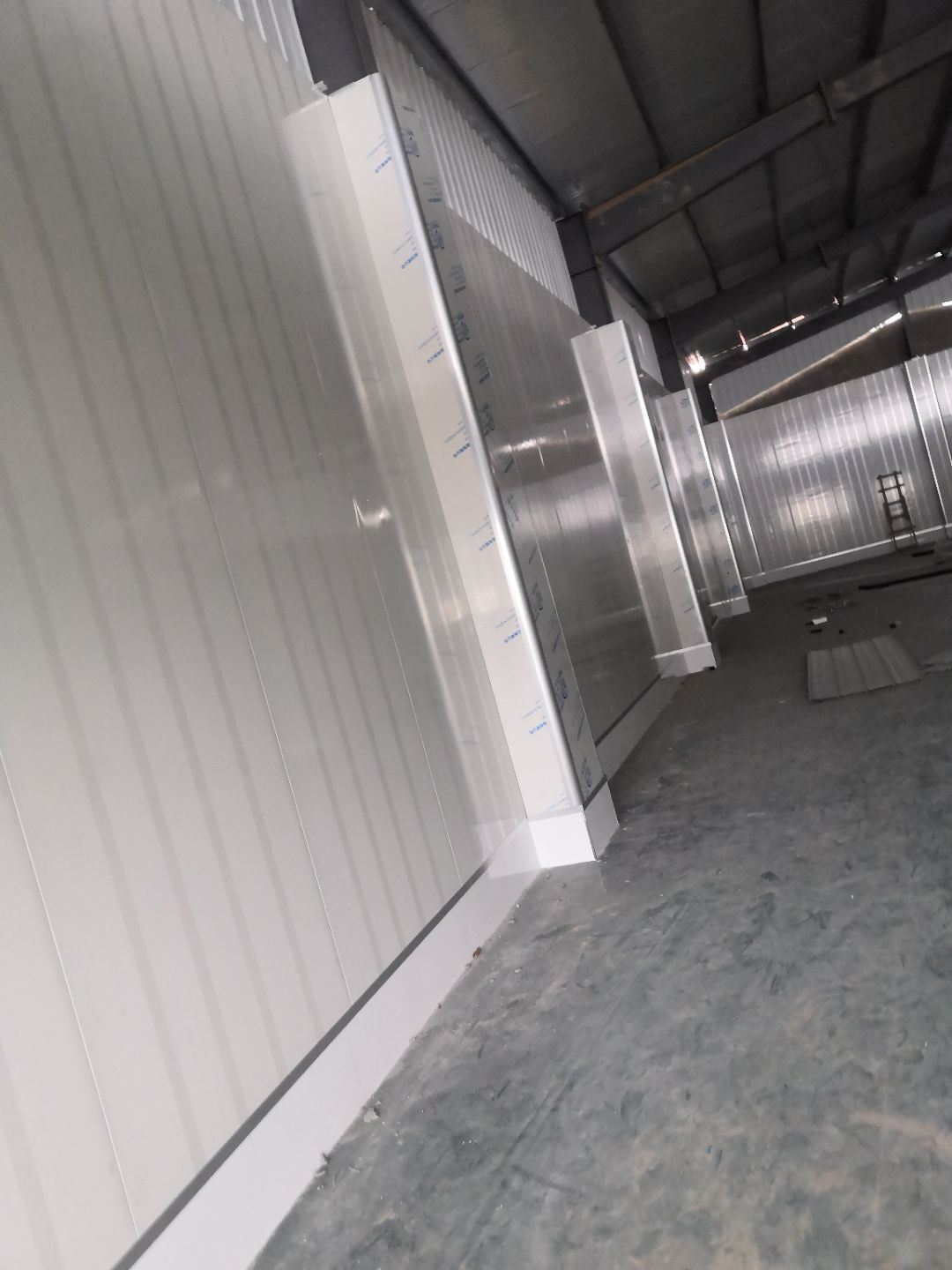 1、車間立墻板,做門,裝門;2、電工施工、開盒子、穿線、裝燈
