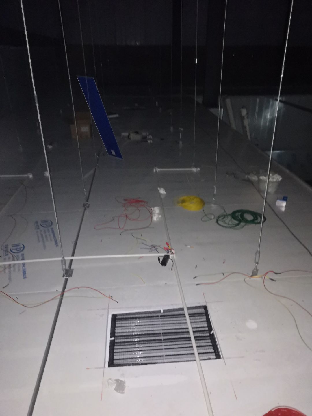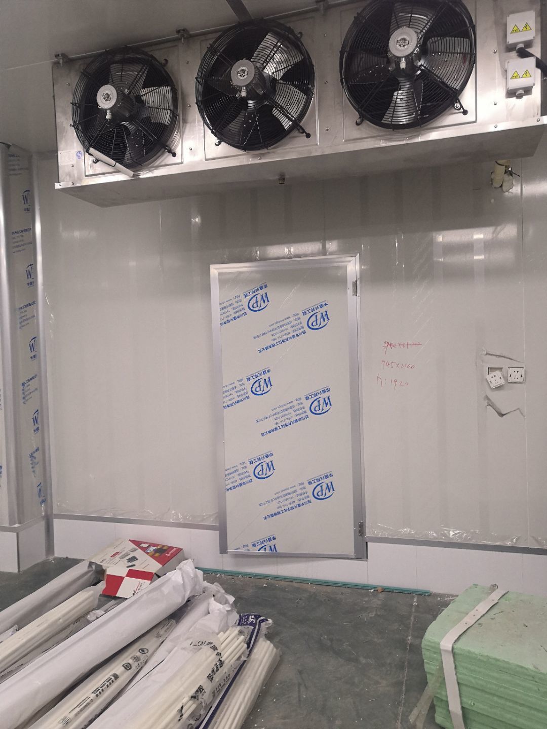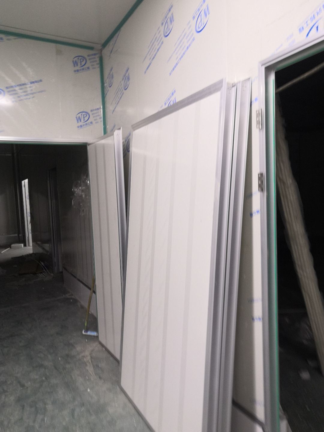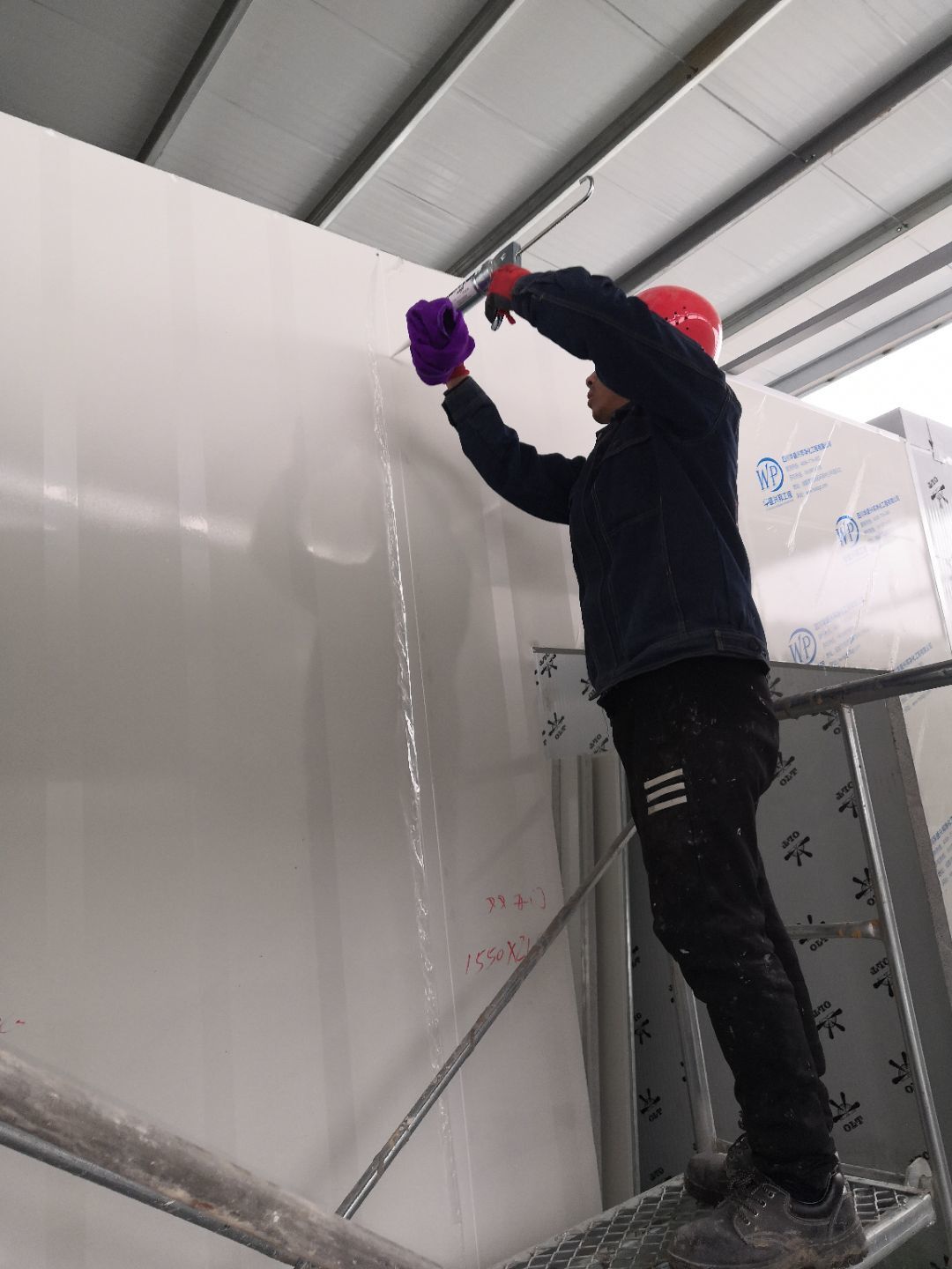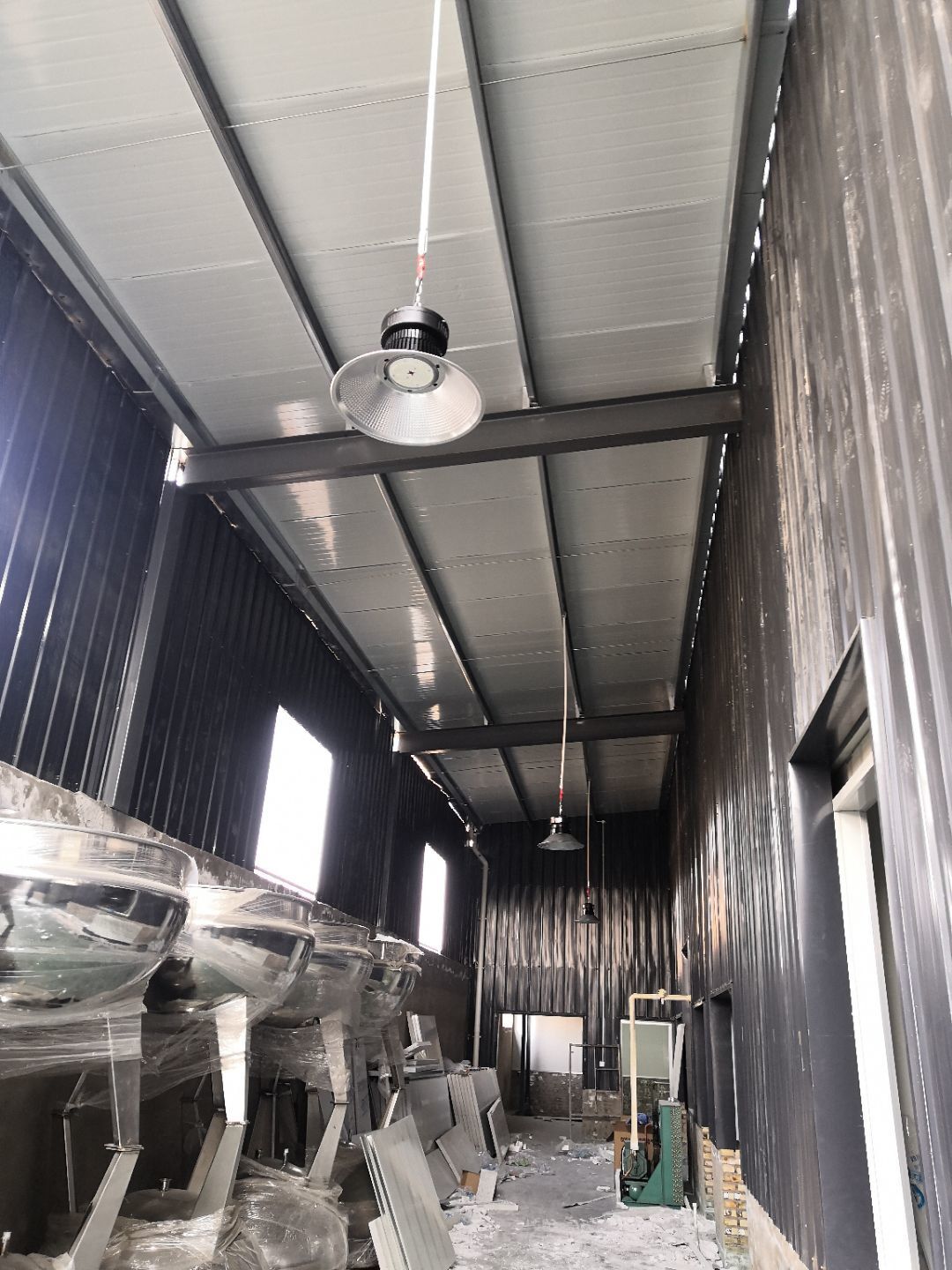 1、車間立墻板,做門,裝門;2、電工施工、開盒子、穿線、裝燈