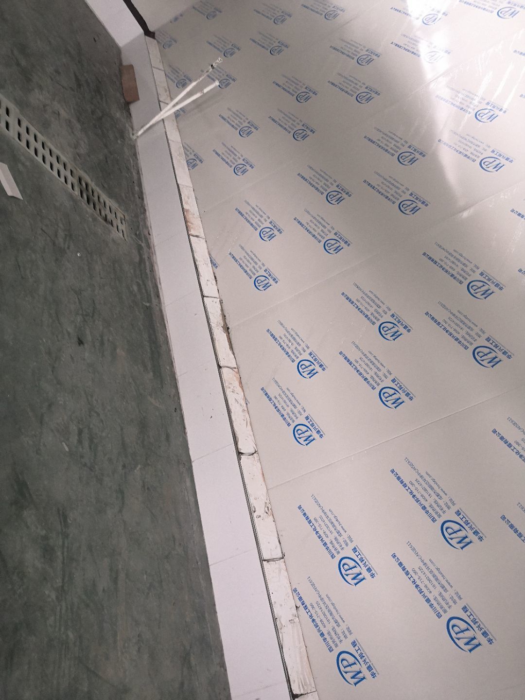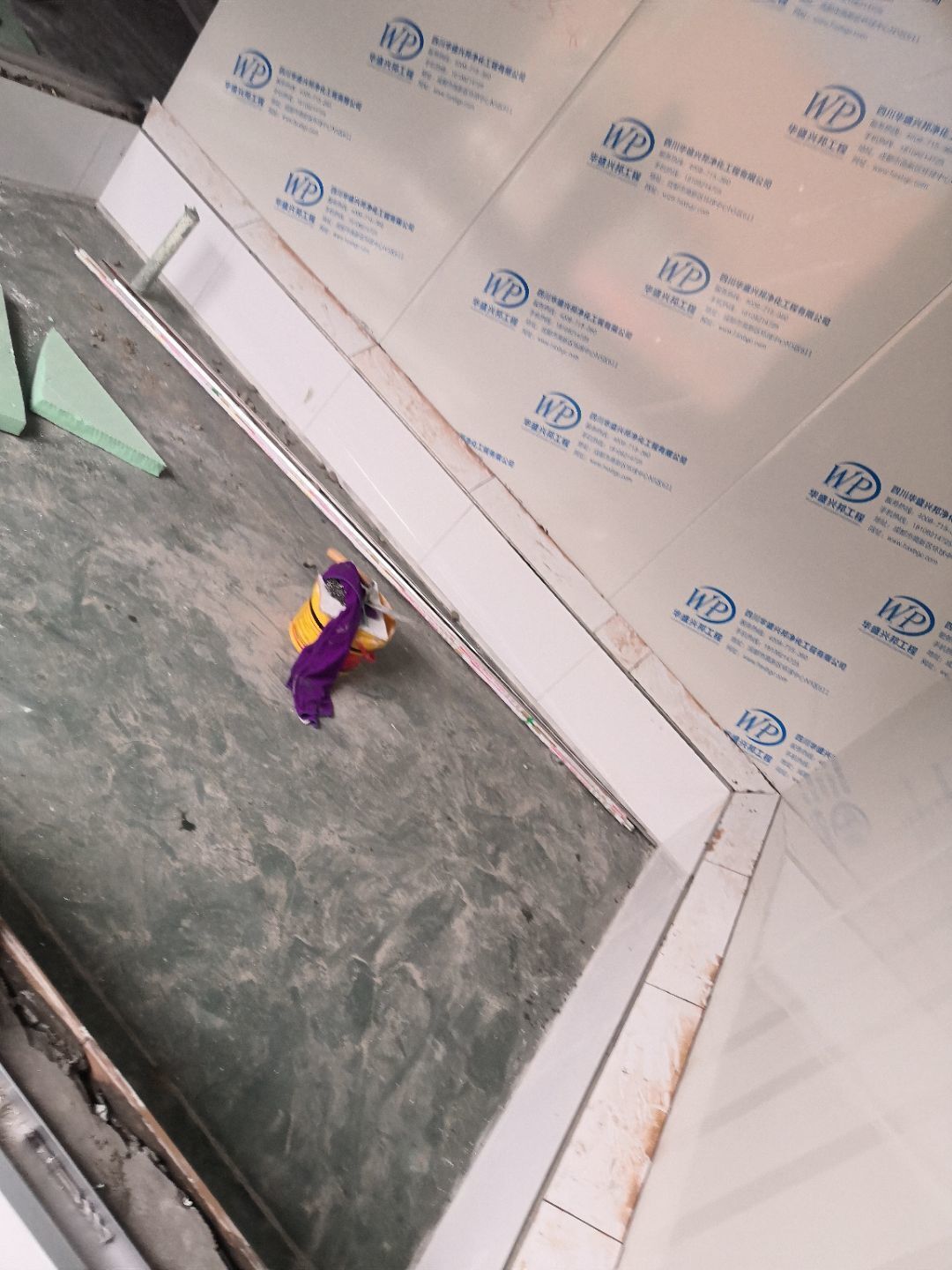 1.車間立墻板,掛T鋁;2.擋水墻貼斜坡,勾縫,做腳踏池