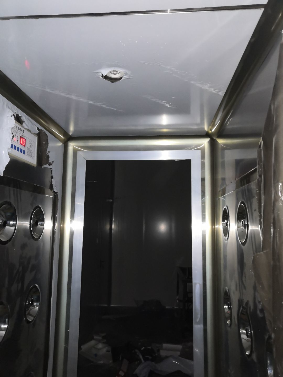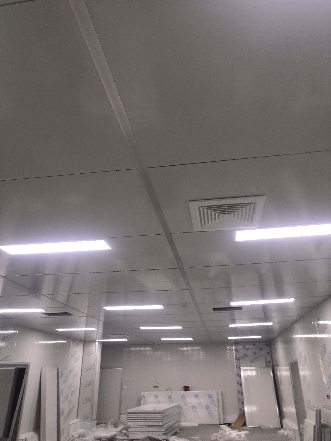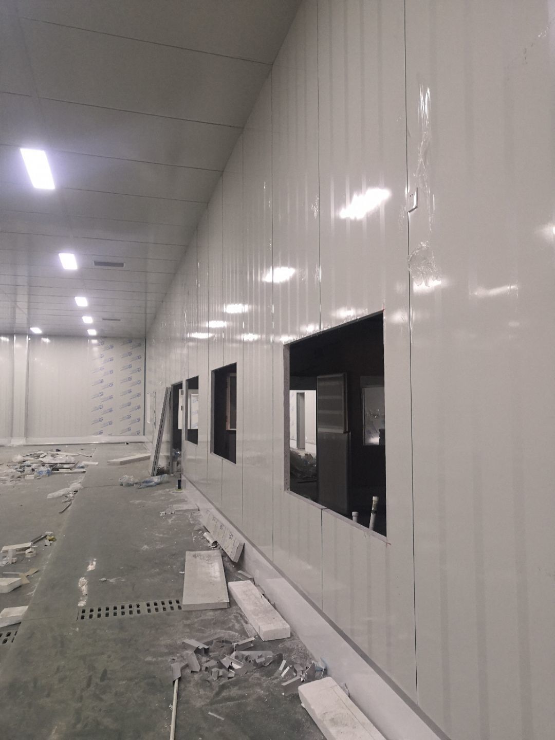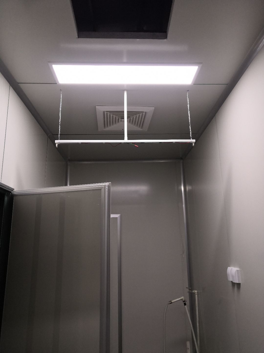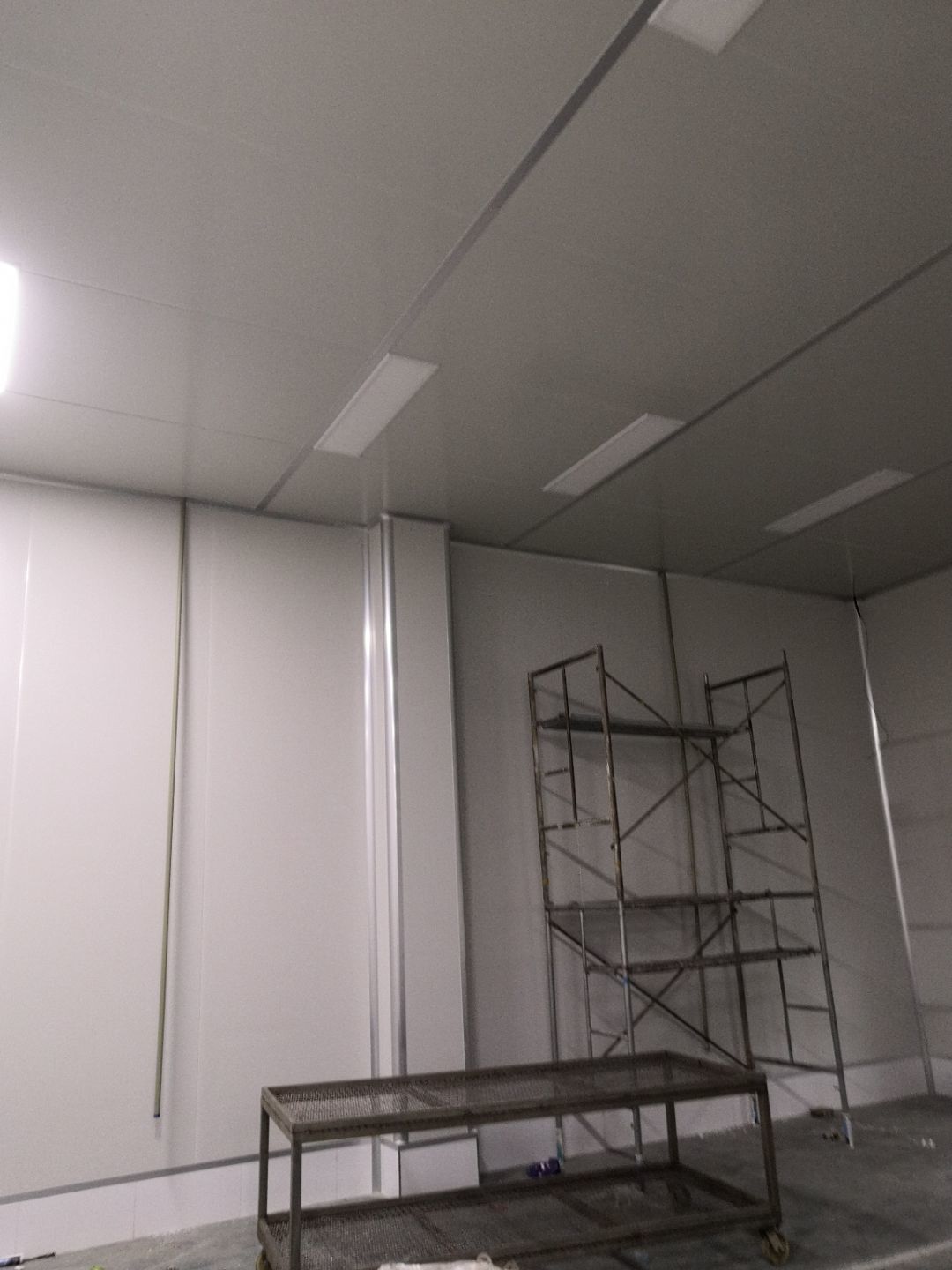 1.打膠,拍圓弧,做風淋室,裝觀察窗 2.吊三防板 3.三防板裝燈,開關,插座