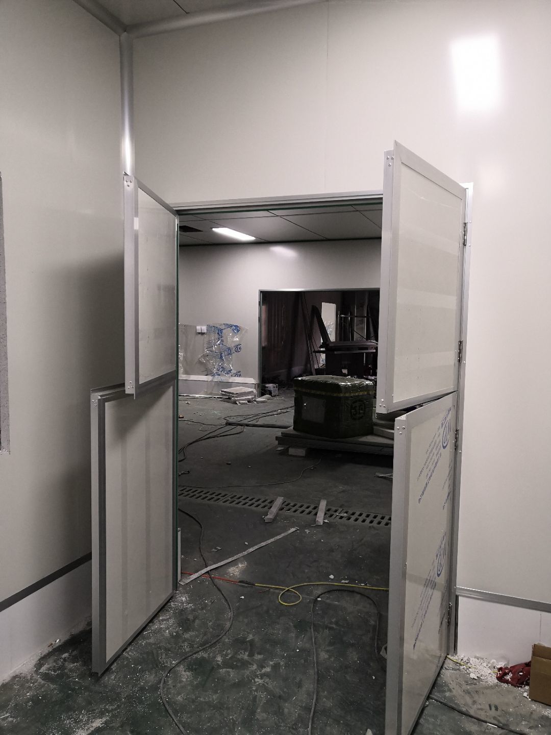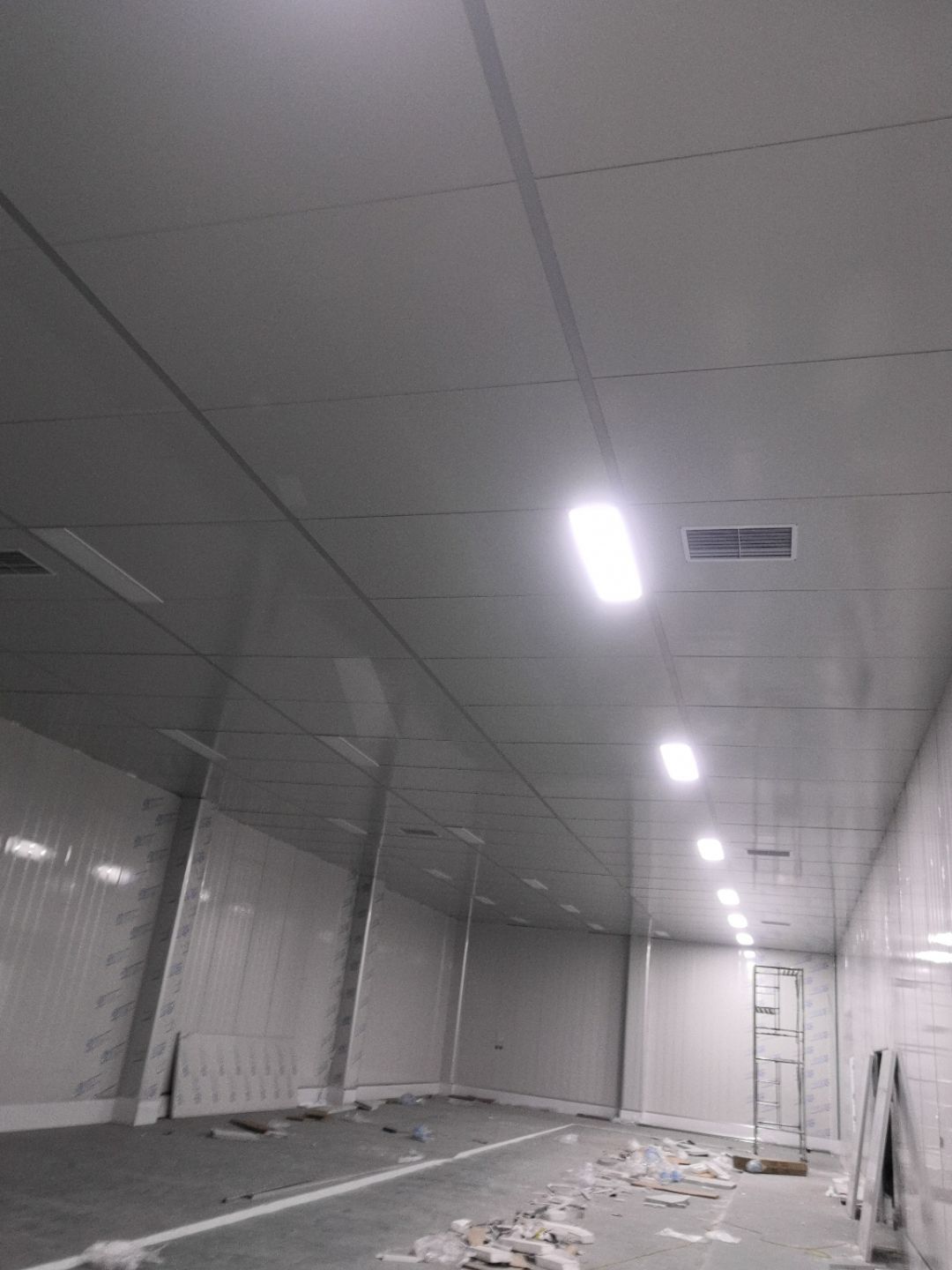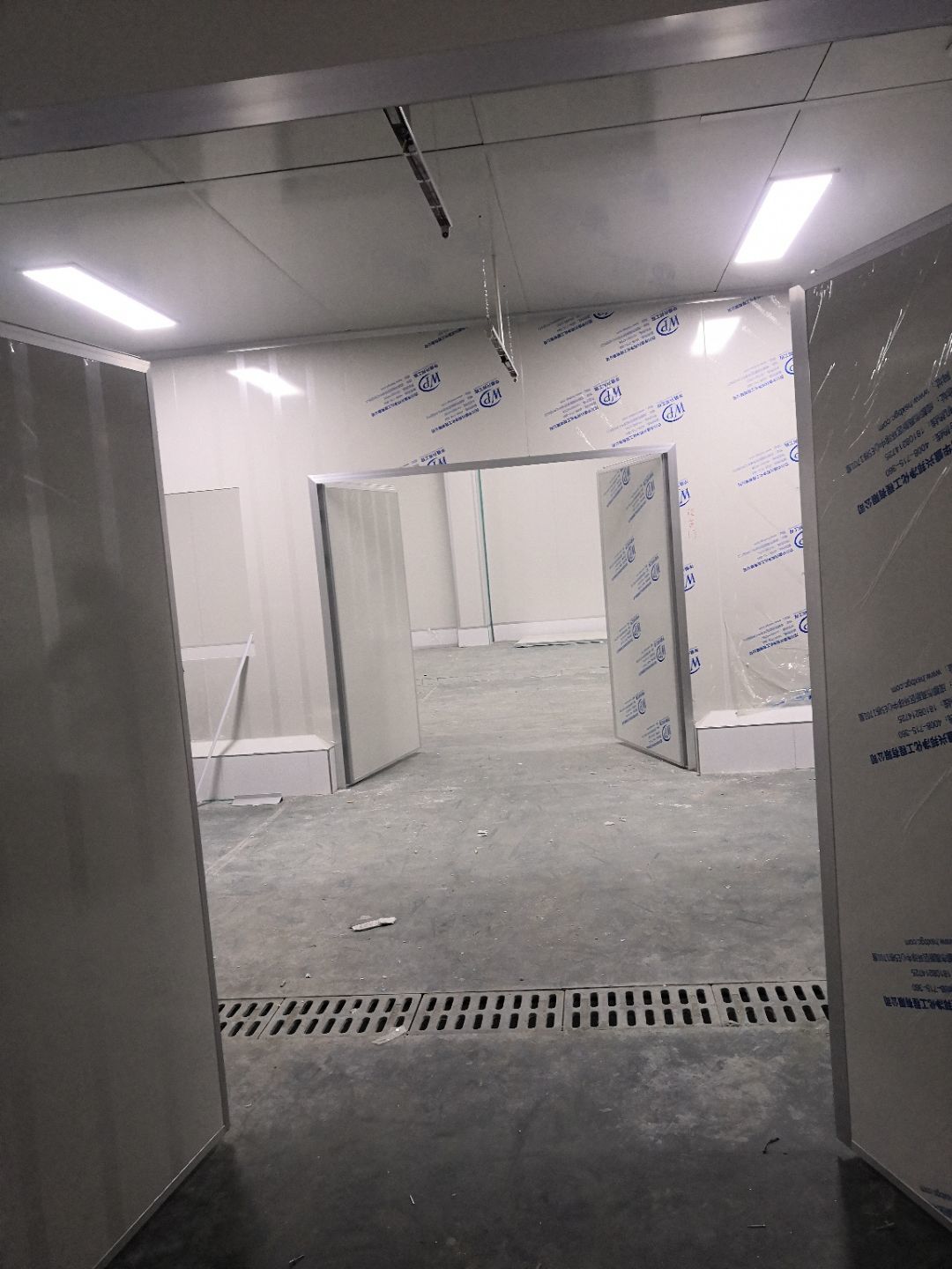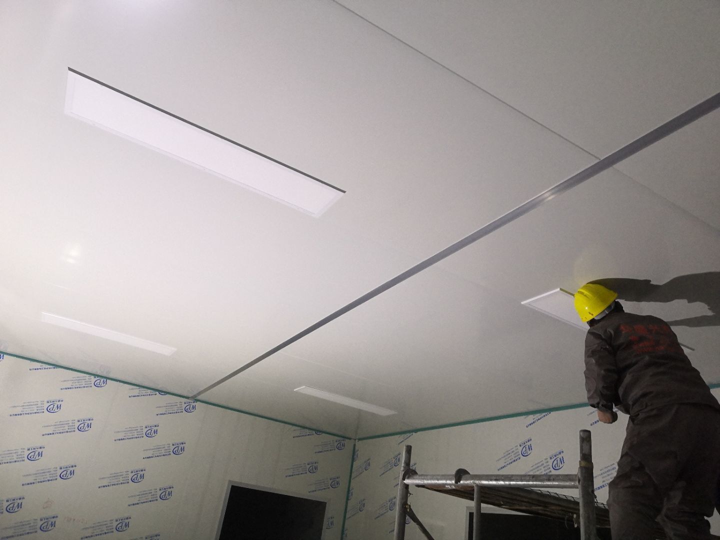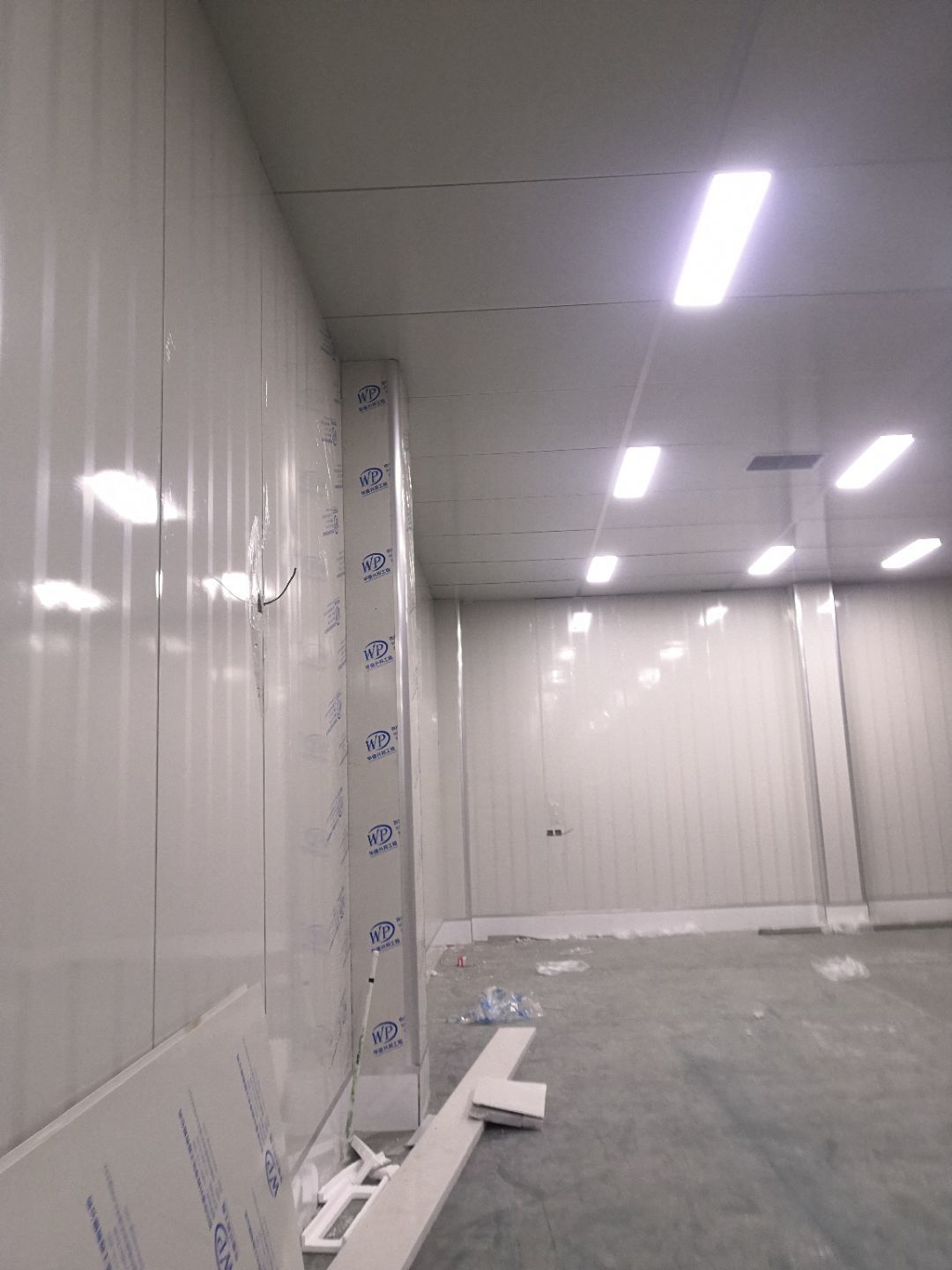 1.打膠,拍圓弧,做風淋室,裝觀察窗 2.吊三防板 3.三防板裝燈,開關,插座