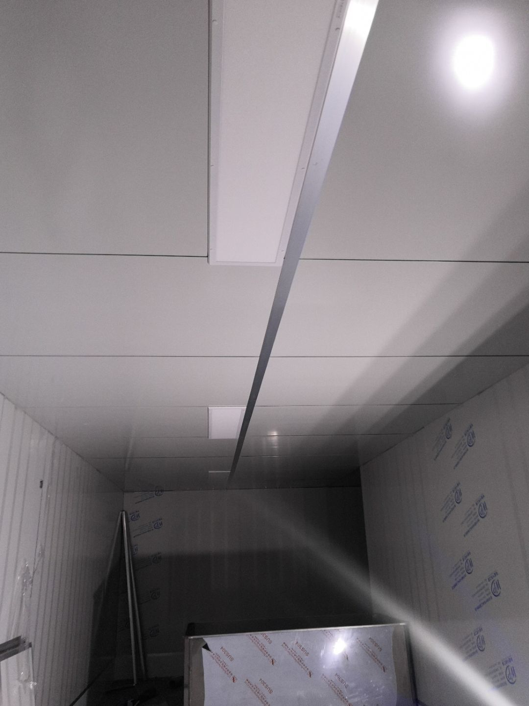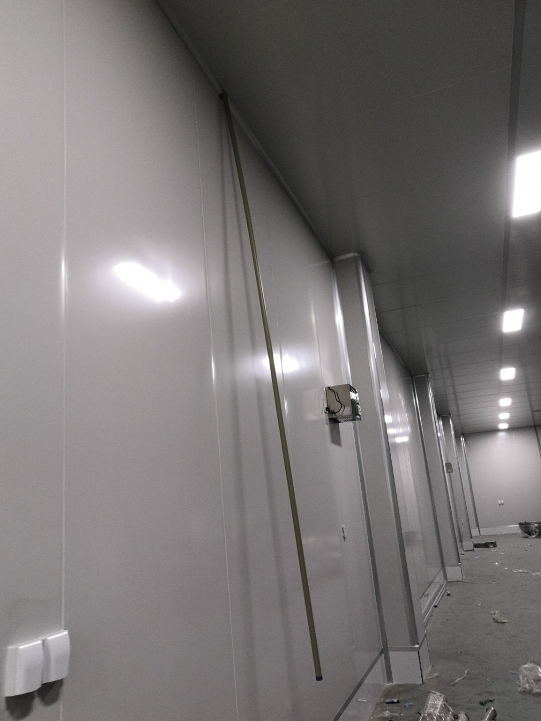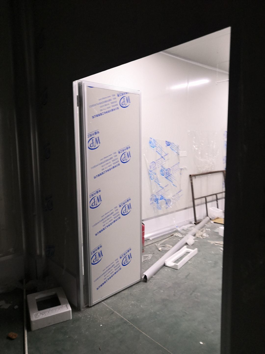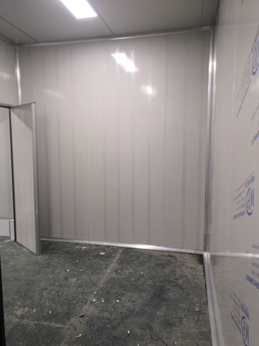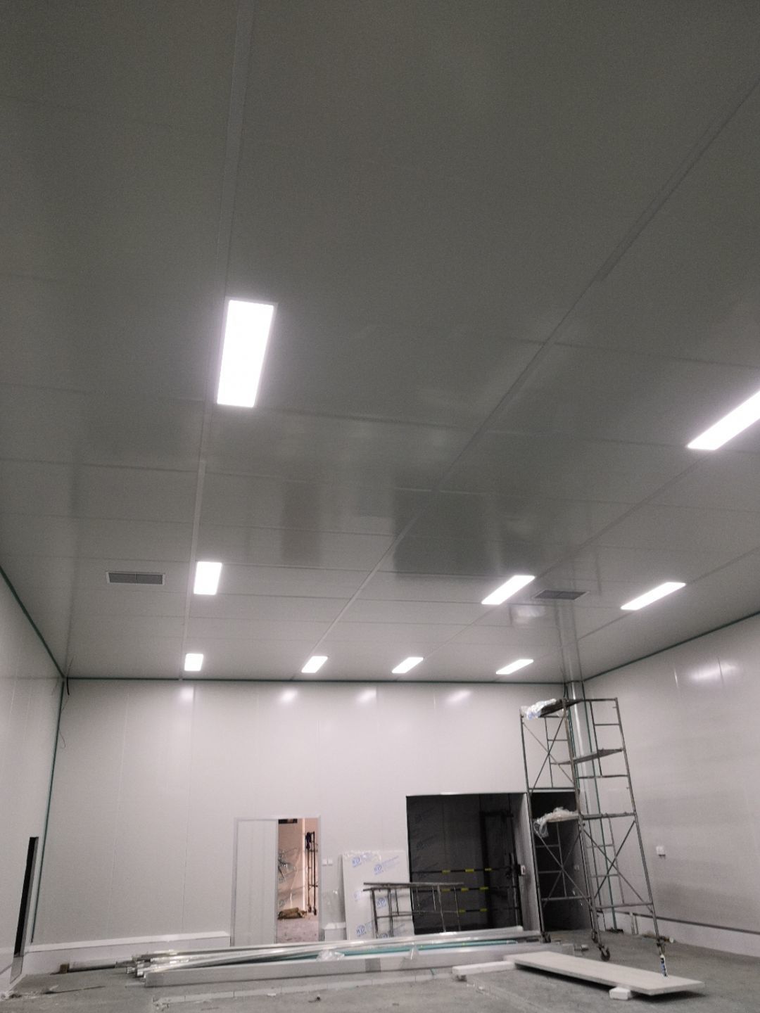 1.打膠,拍圓弧,做風淋室,裝觀察窗 2.吊三防板 3.三防板裝燈,開關,插座