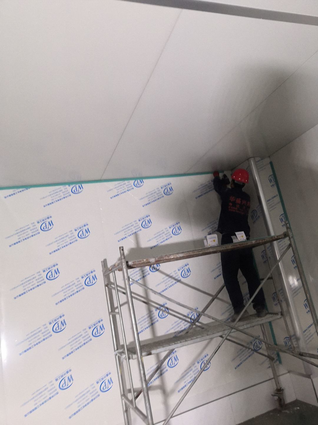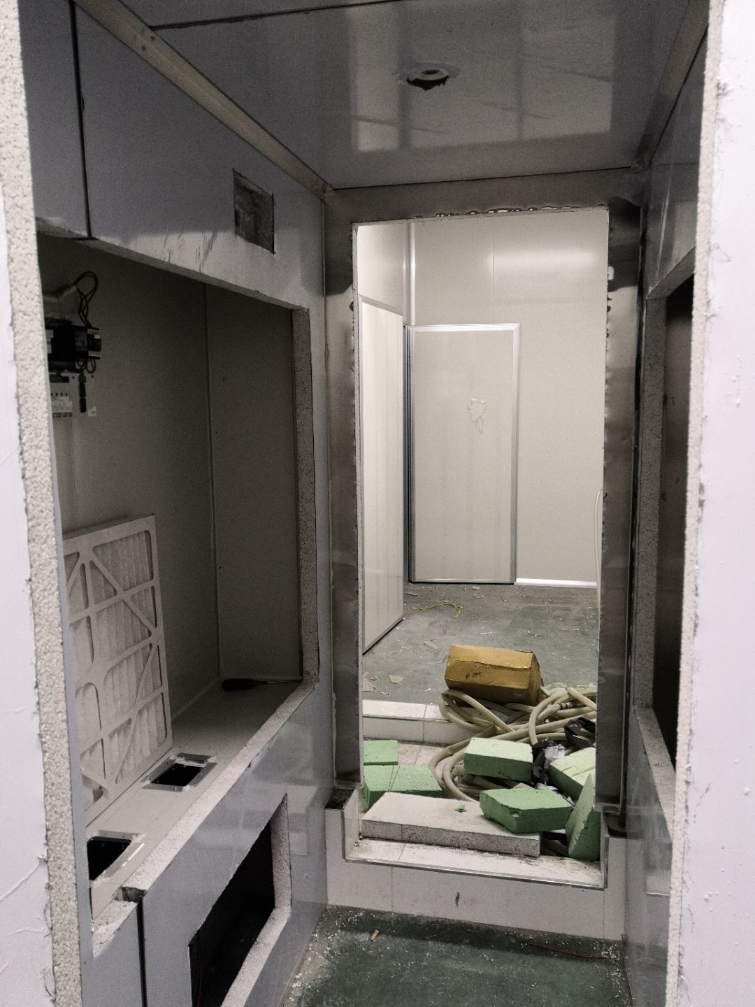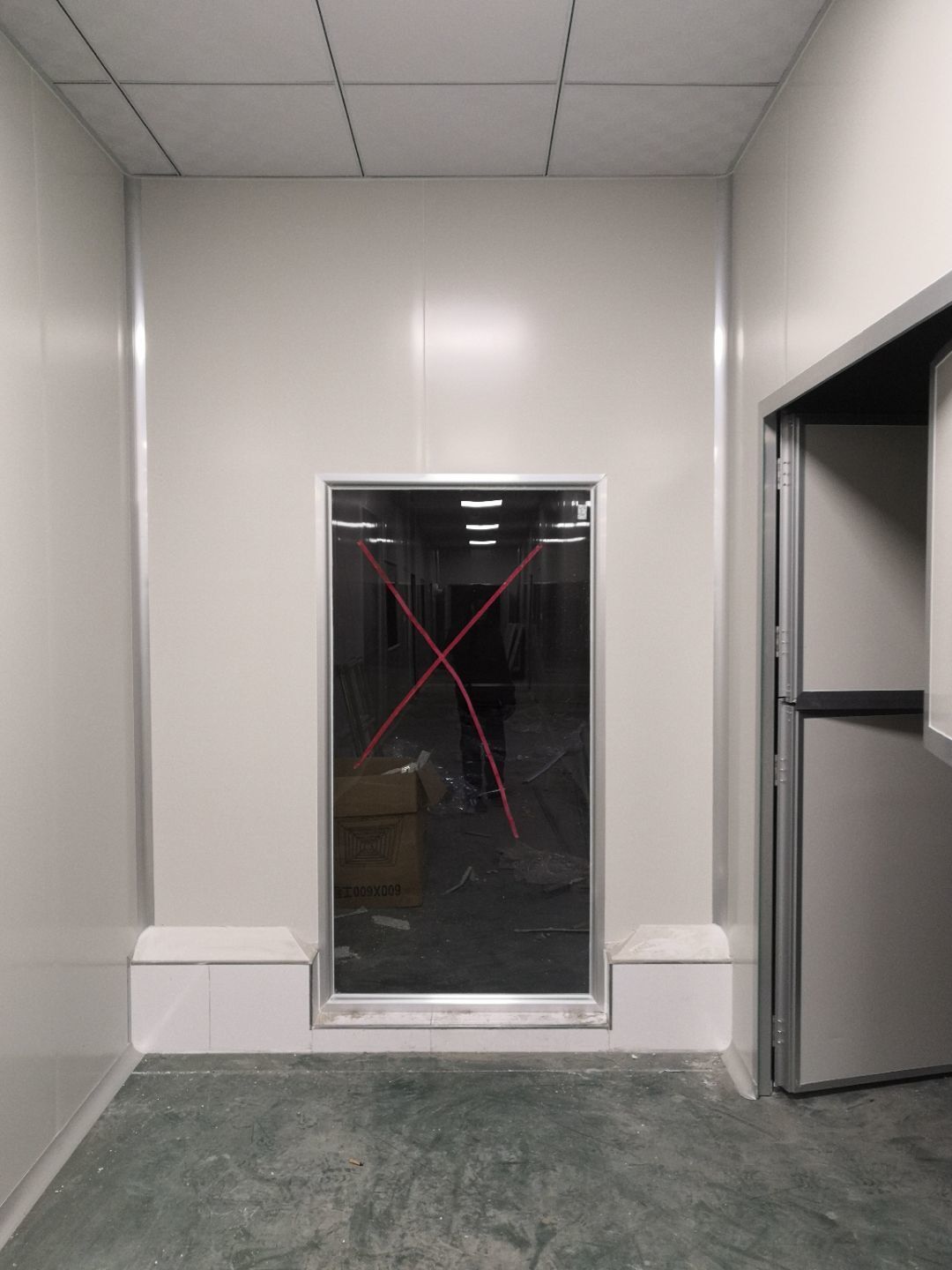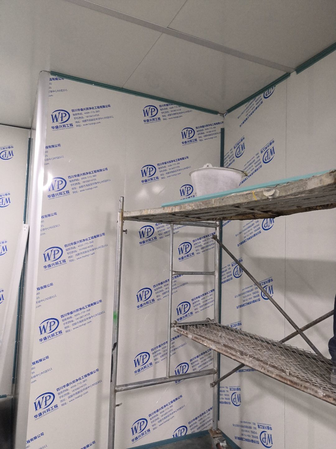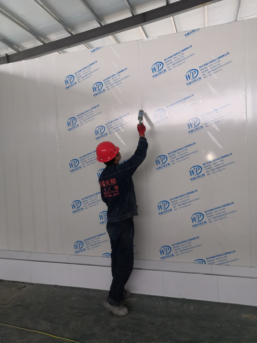 1.打膠,拍圓弧,做風淋室,裝觀察窗 2.吊三防板 3.三防板裝燈,開關,插座