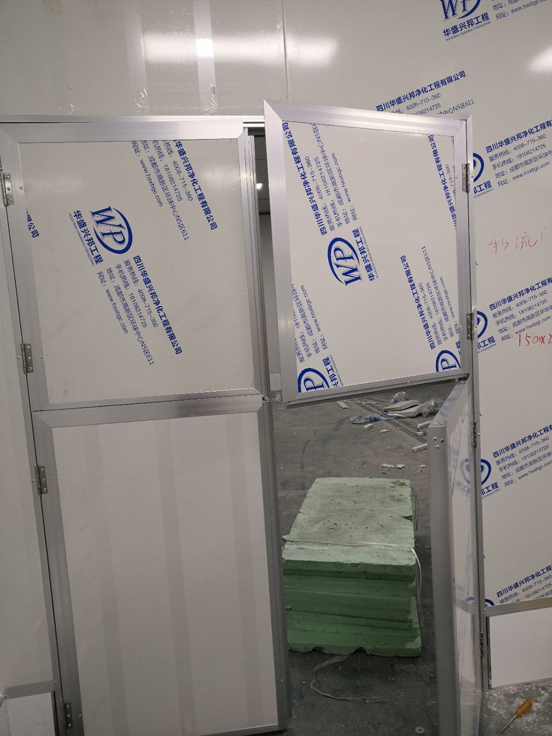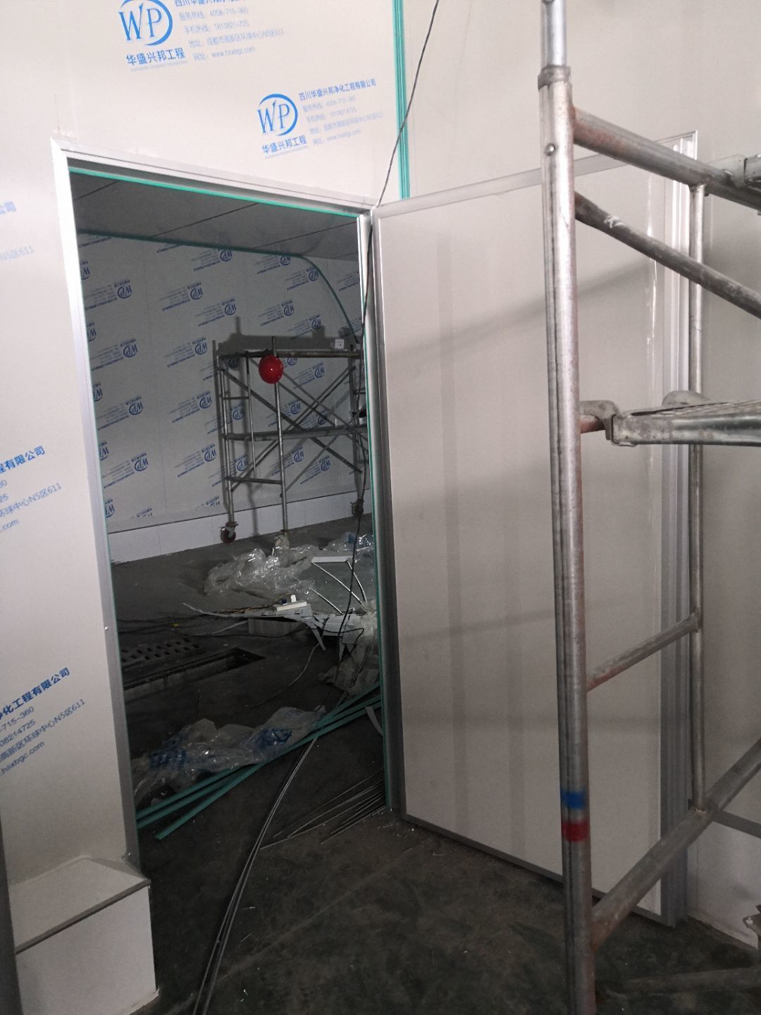 1.裝門,打膠,拍圓弧,做風淋室 2.三防板吊頂