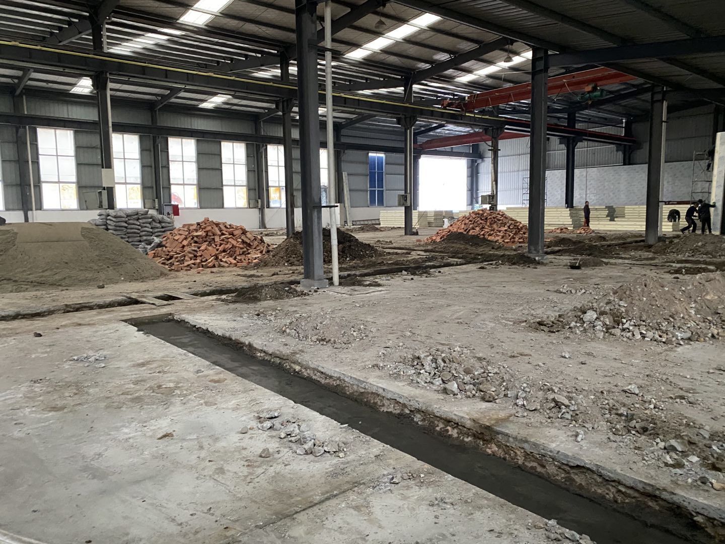1,排水溝貼磚完成60米。 2,擋水墻砌筑完成80米。抹灰完成40米。 3,鋼平臺隊伍完成柱子材料下料,預埋件安裝澆筑混凝土。 4,凍庫防水完成百分之九十。