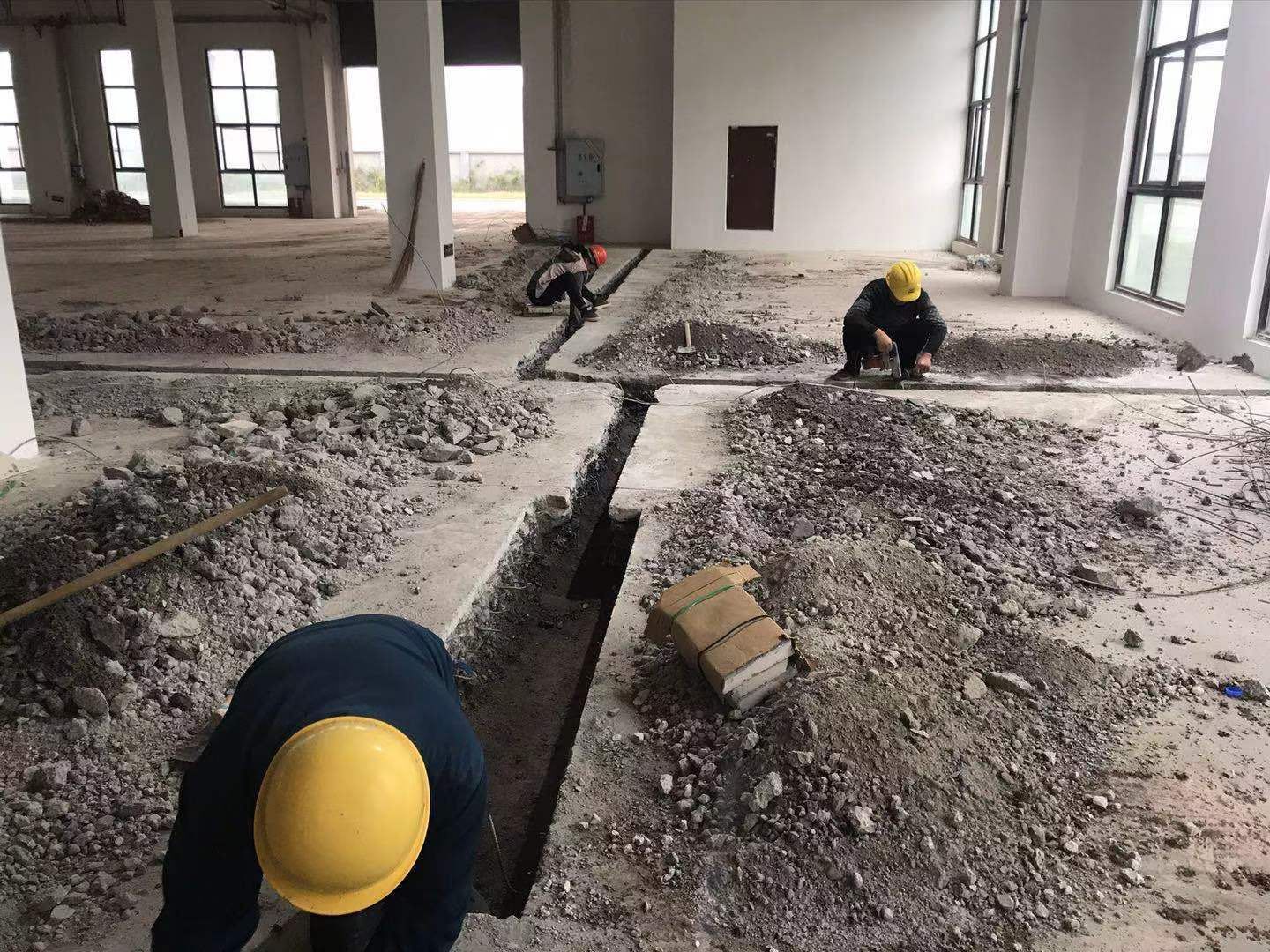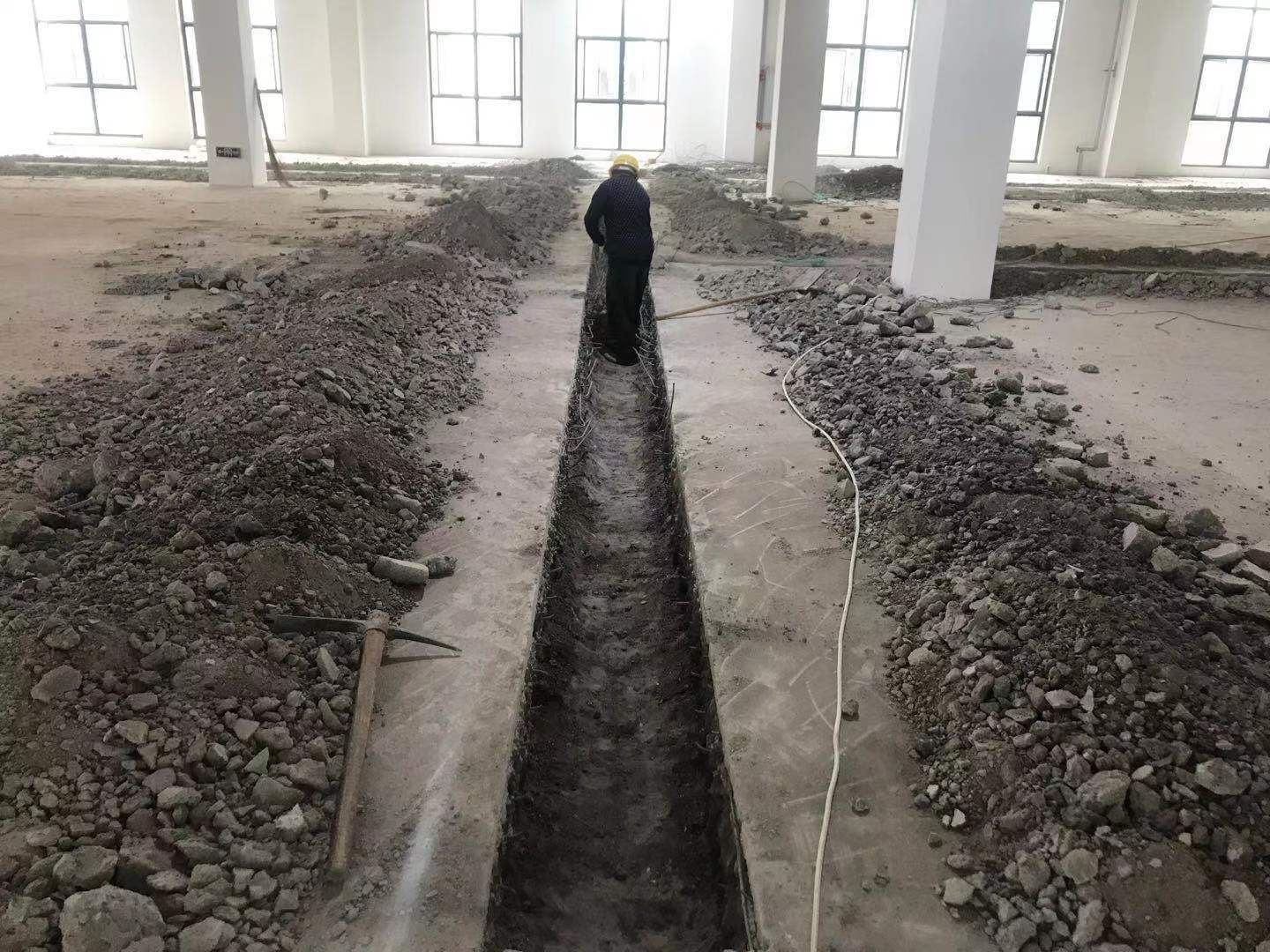 四川洛鮮食品科技有限公司廠房裝修現(xiàn)場(chǎng):1、水泥河沙等土建材料到場(chǎng)。 2、放線,排水溝排水管切縫完成。