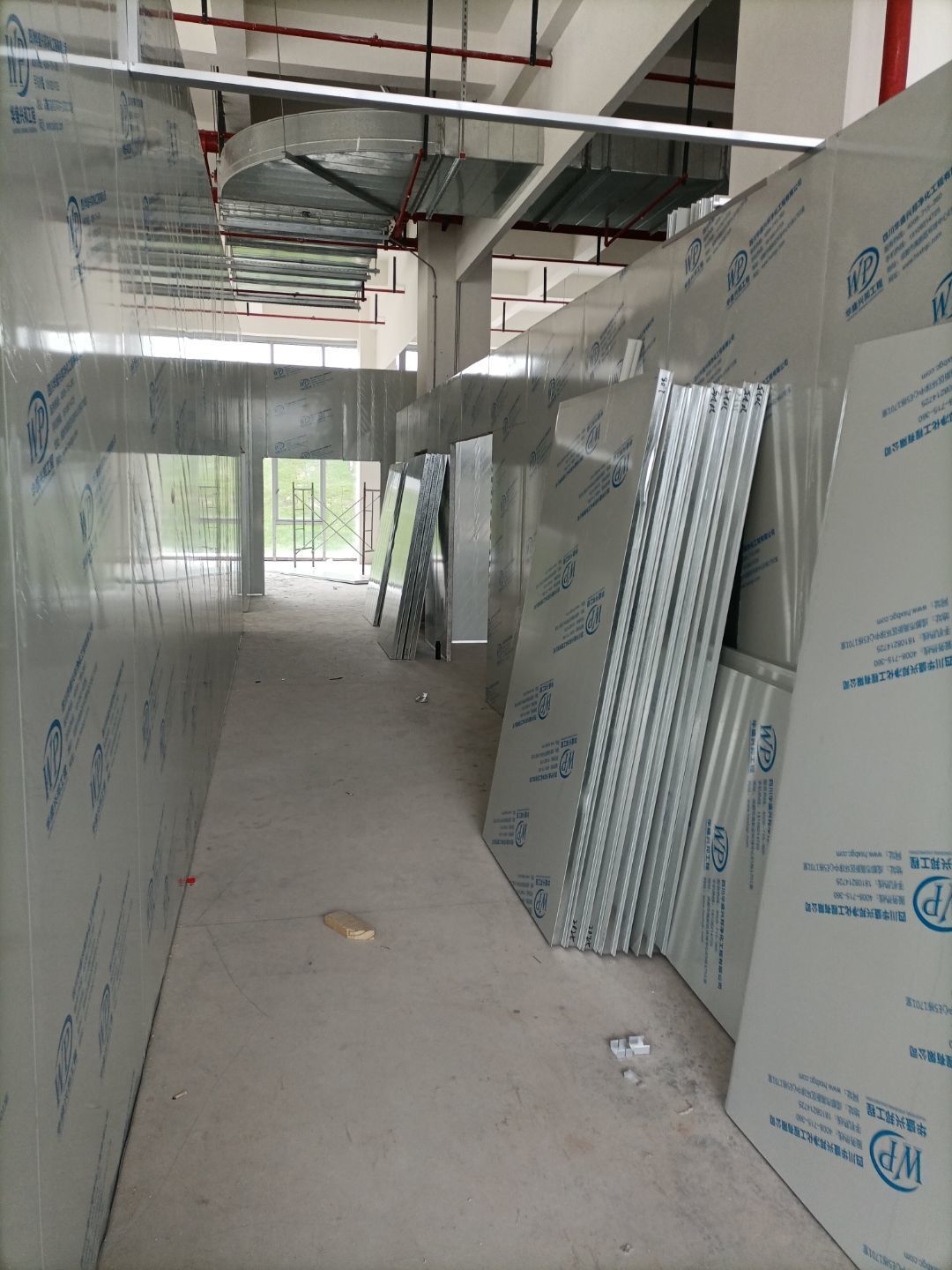 1:主風(fēng)管完成80% 2:墻板完成30%