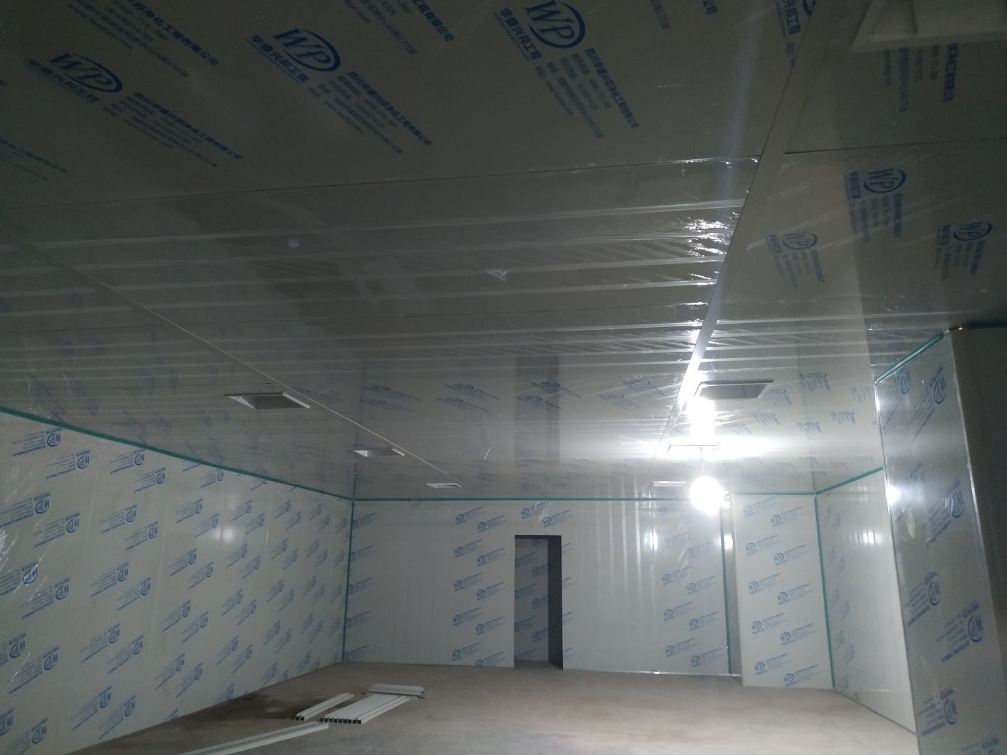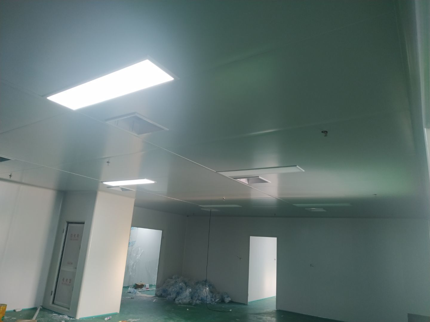 固化地坪區(qū)域上固化劑完成,開始細(xì)磨;凈化頂板安裝完成約80%,圓弧安裝完成約25%,門料預(yù)制完成90%。