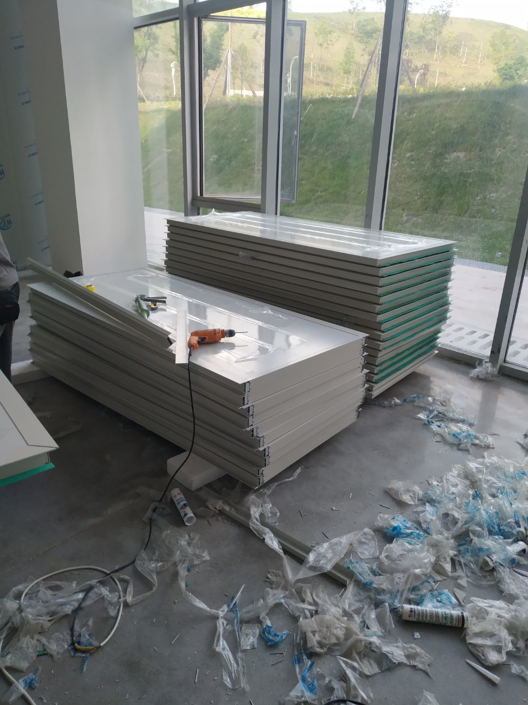 燈具安裝完成60%,窗戶和安全窗開洞完成,窗料預(yù)制完成