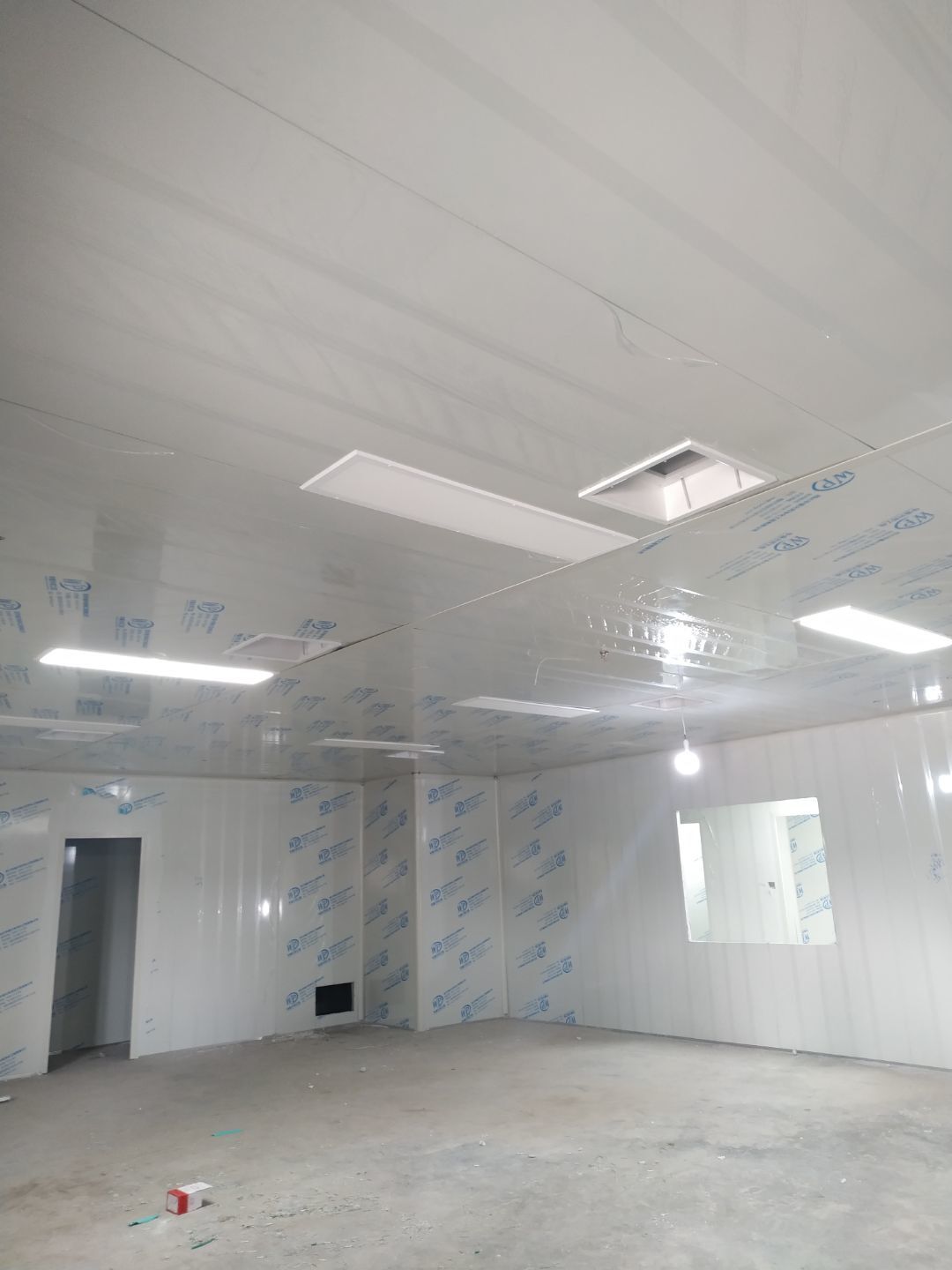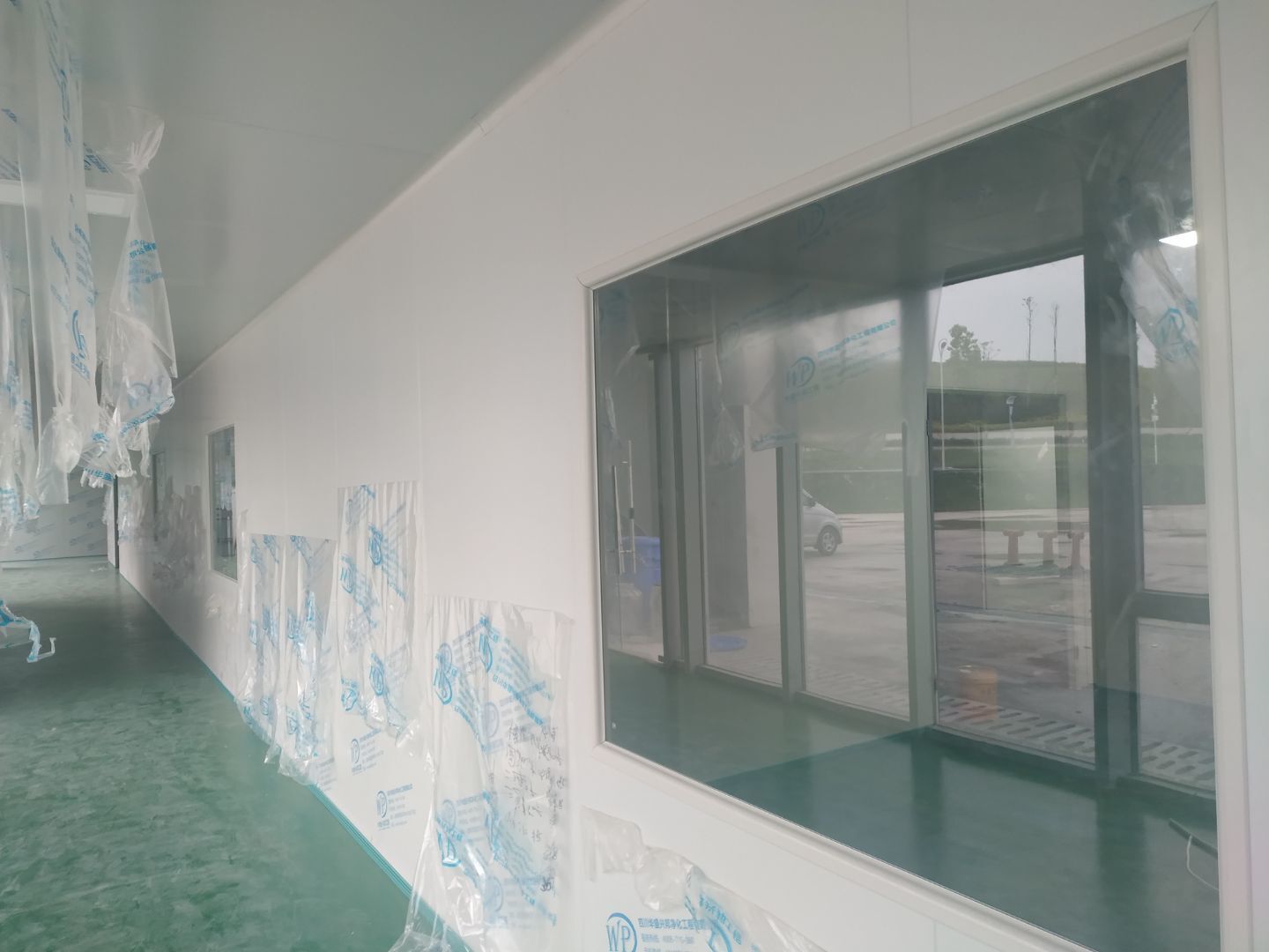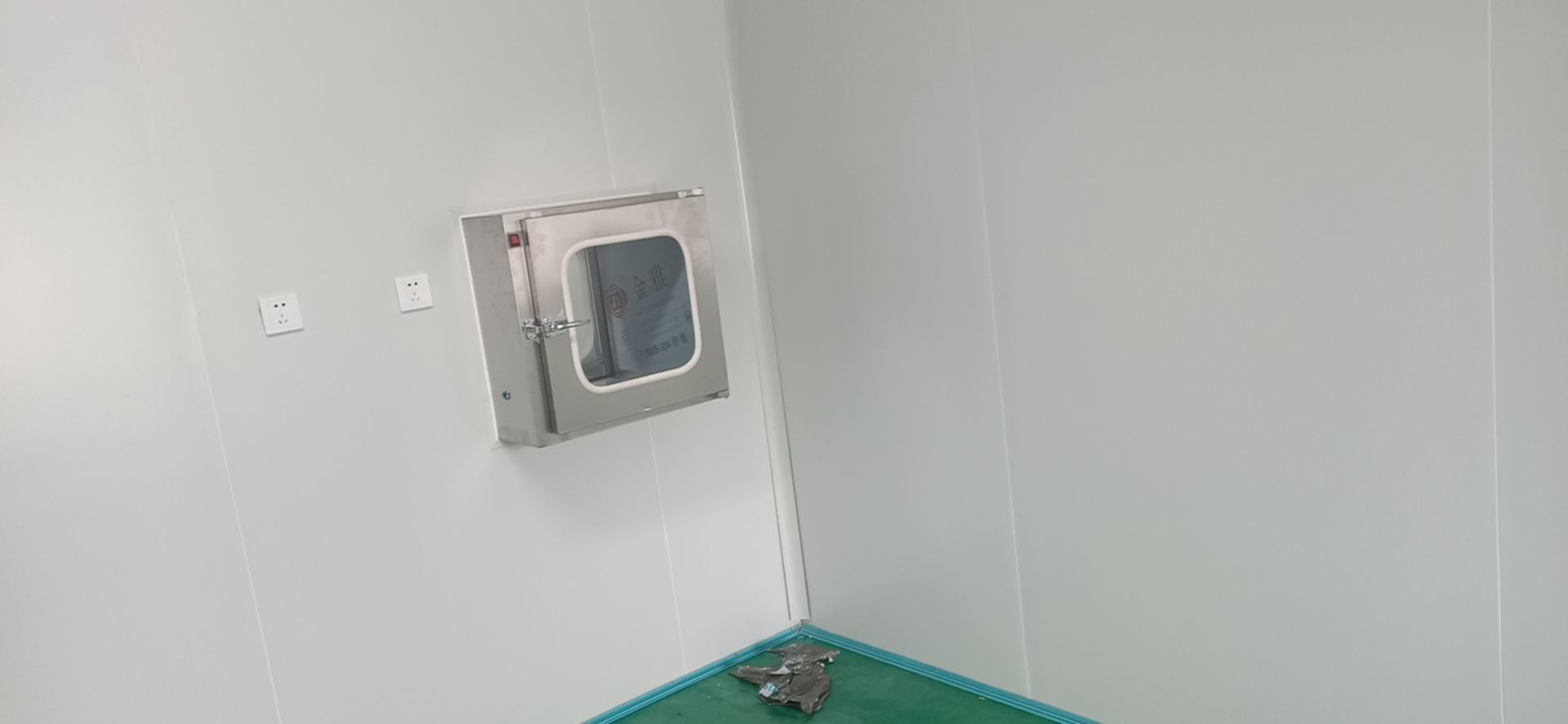 1:撕膜打膠完成約85%;2:傳遞窗安逸完成,空調(diào)機(jī)組組裝完成;3:開關(guān)插座面板安裝完成,觀察窗安裝完成;4:風(fēng)管支管安裝完成20%。