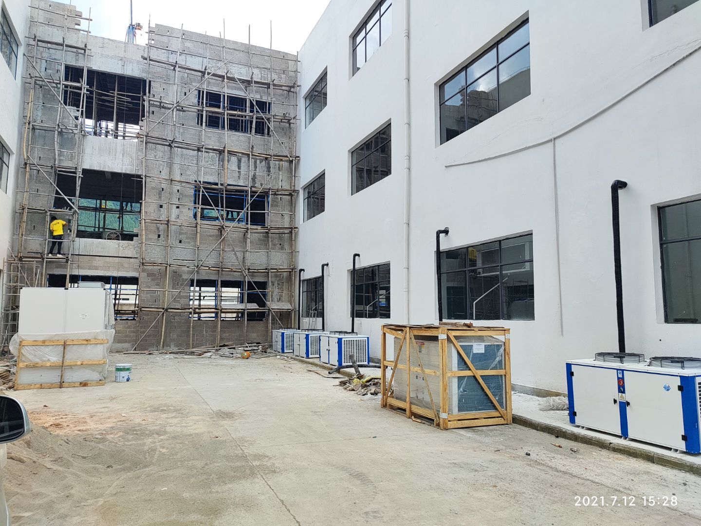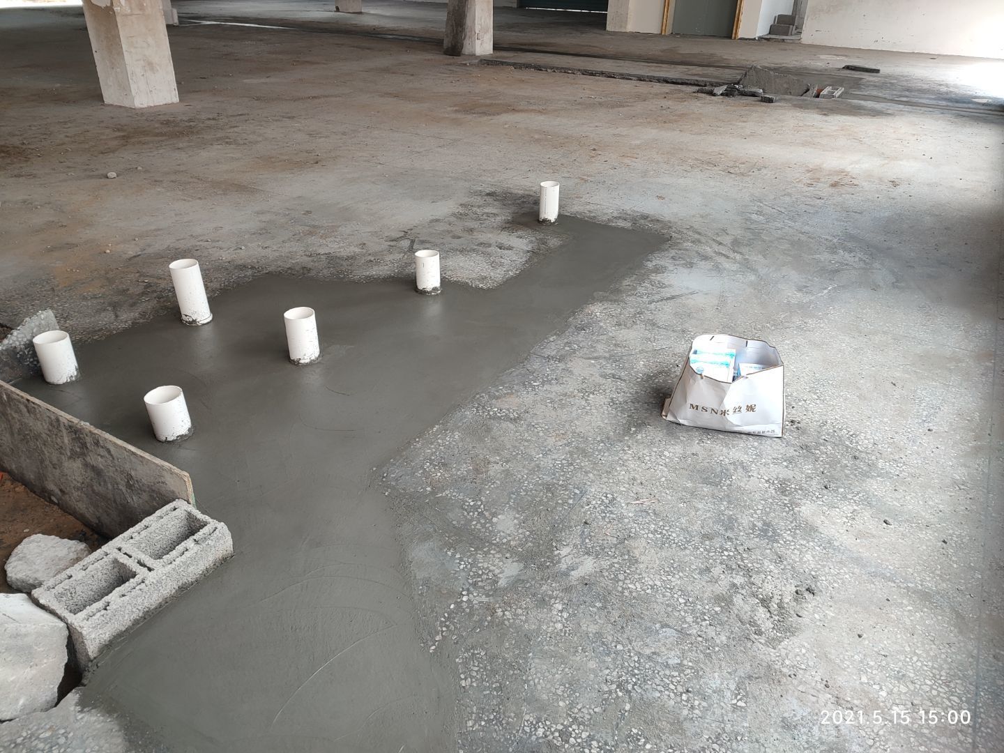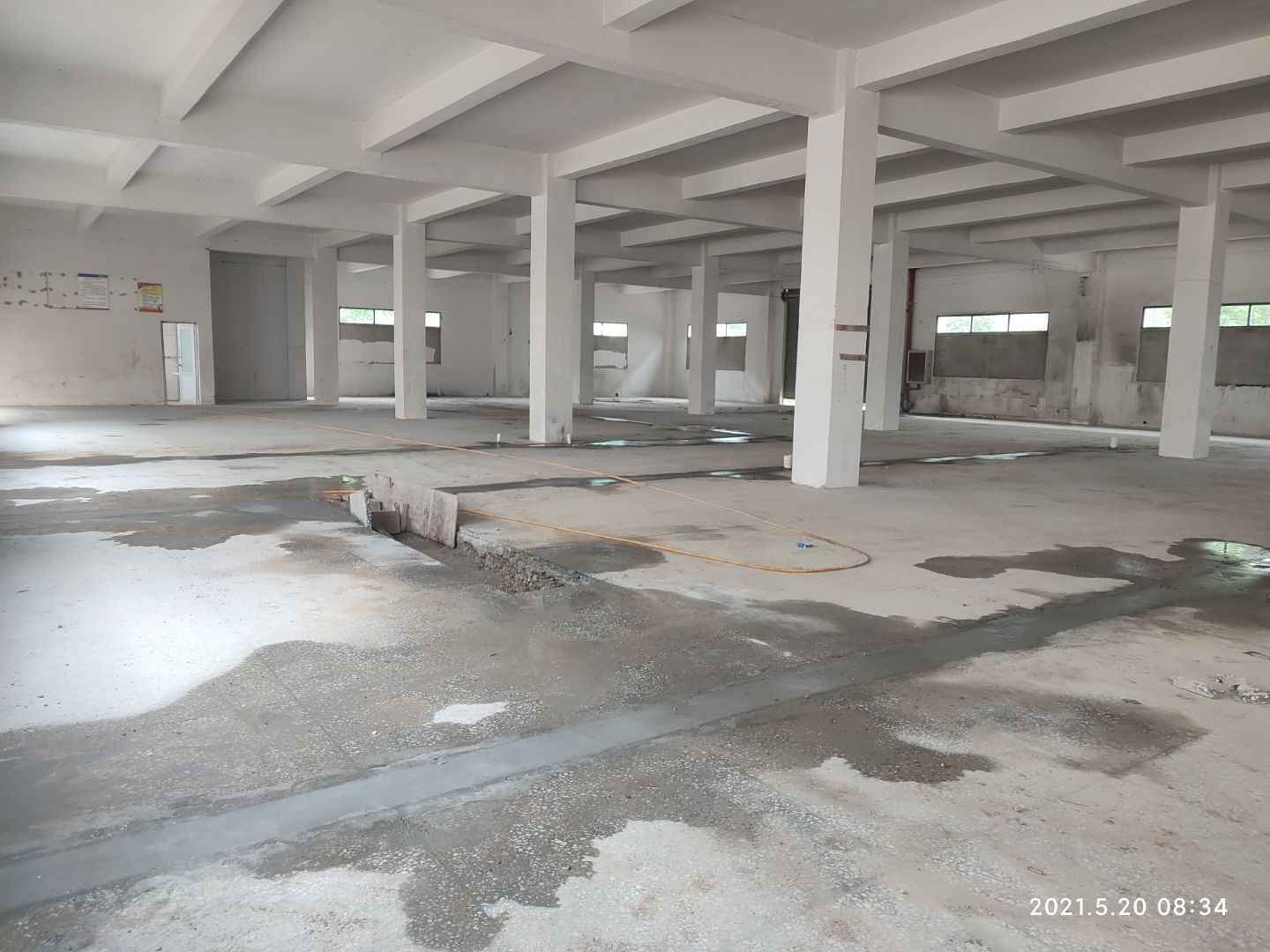 1,擋水墻完成; 2,固化地坪打磨完成近一半; 3,隔斷彩板到貨三分之一。