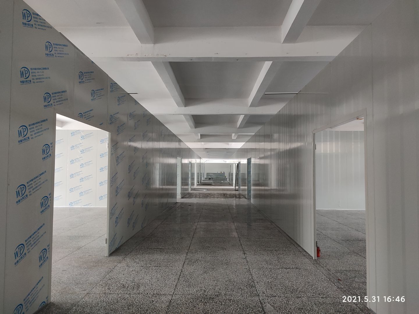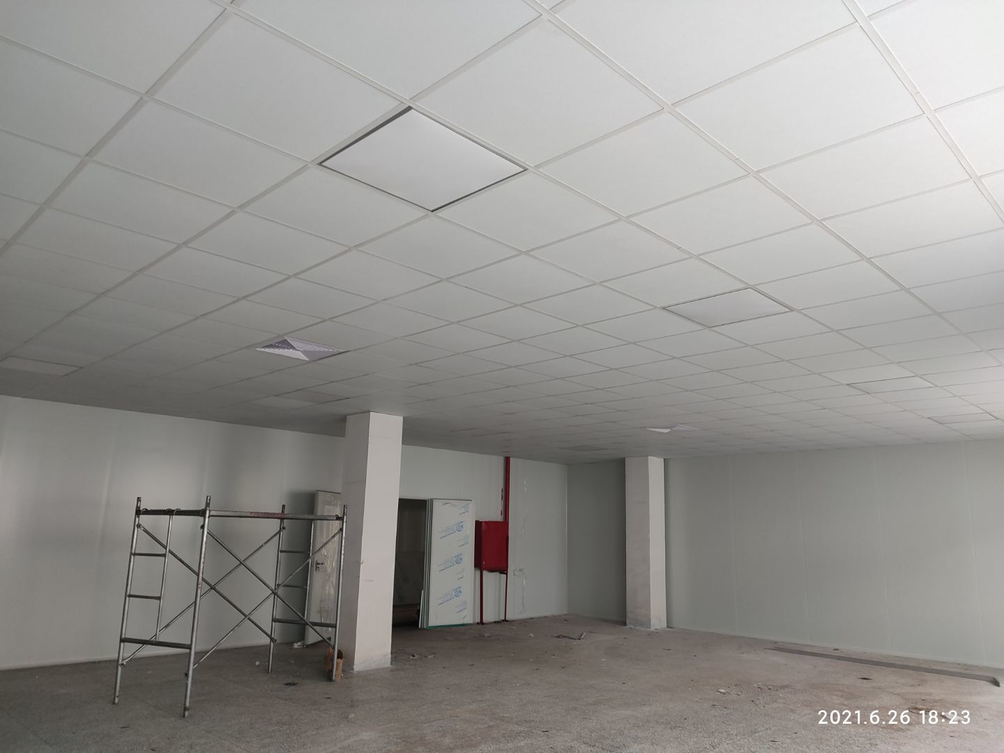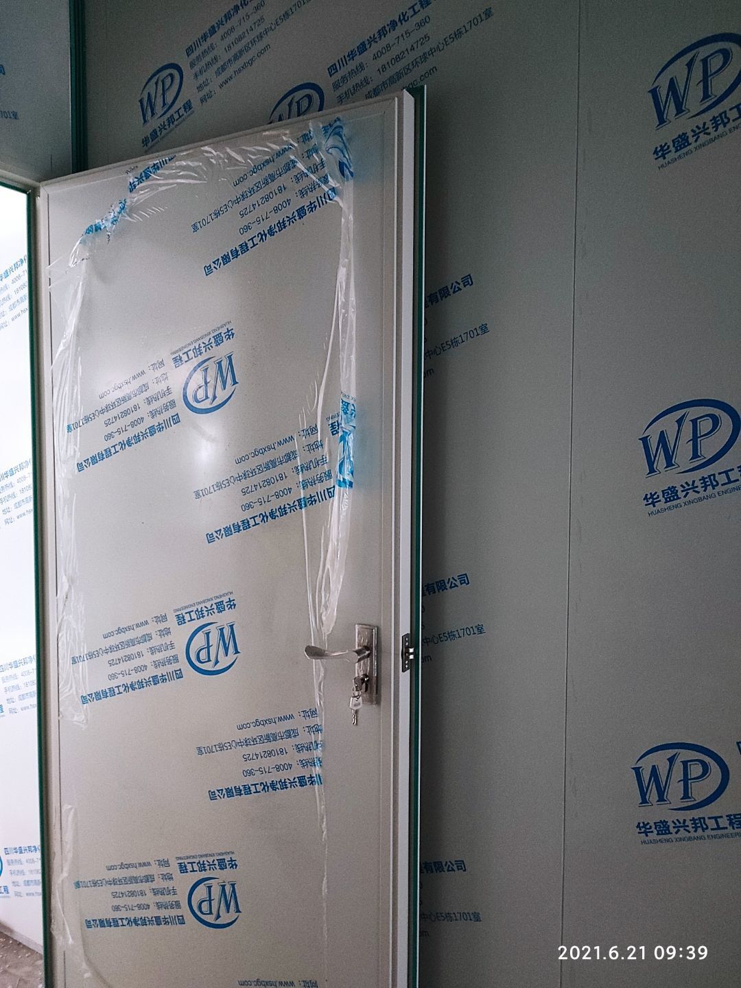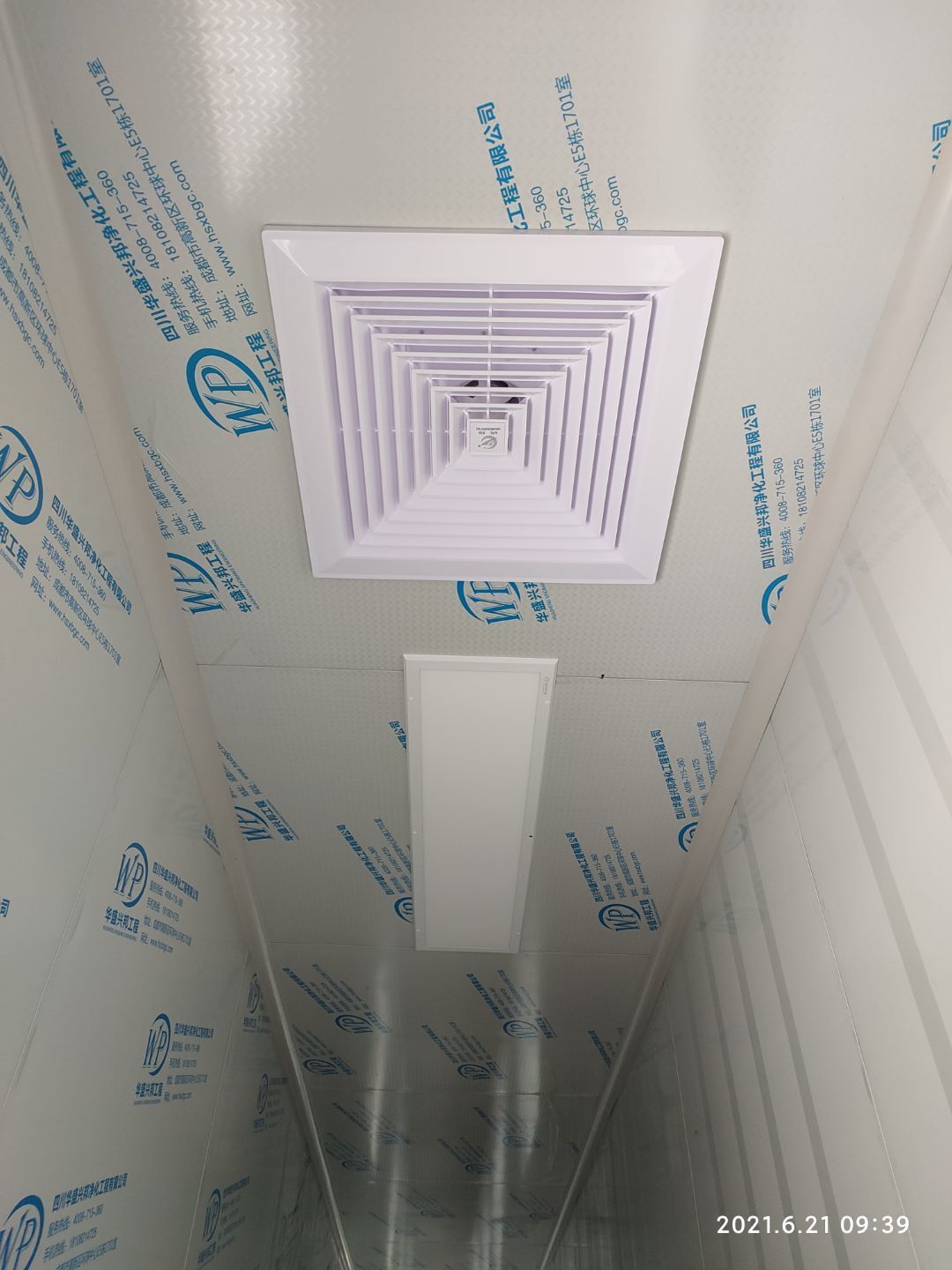 1.頂板撕膜打膠完成35% 2.彩鋼板區域換氣扇安裝完成70% 3.門鎖安裝完成70%