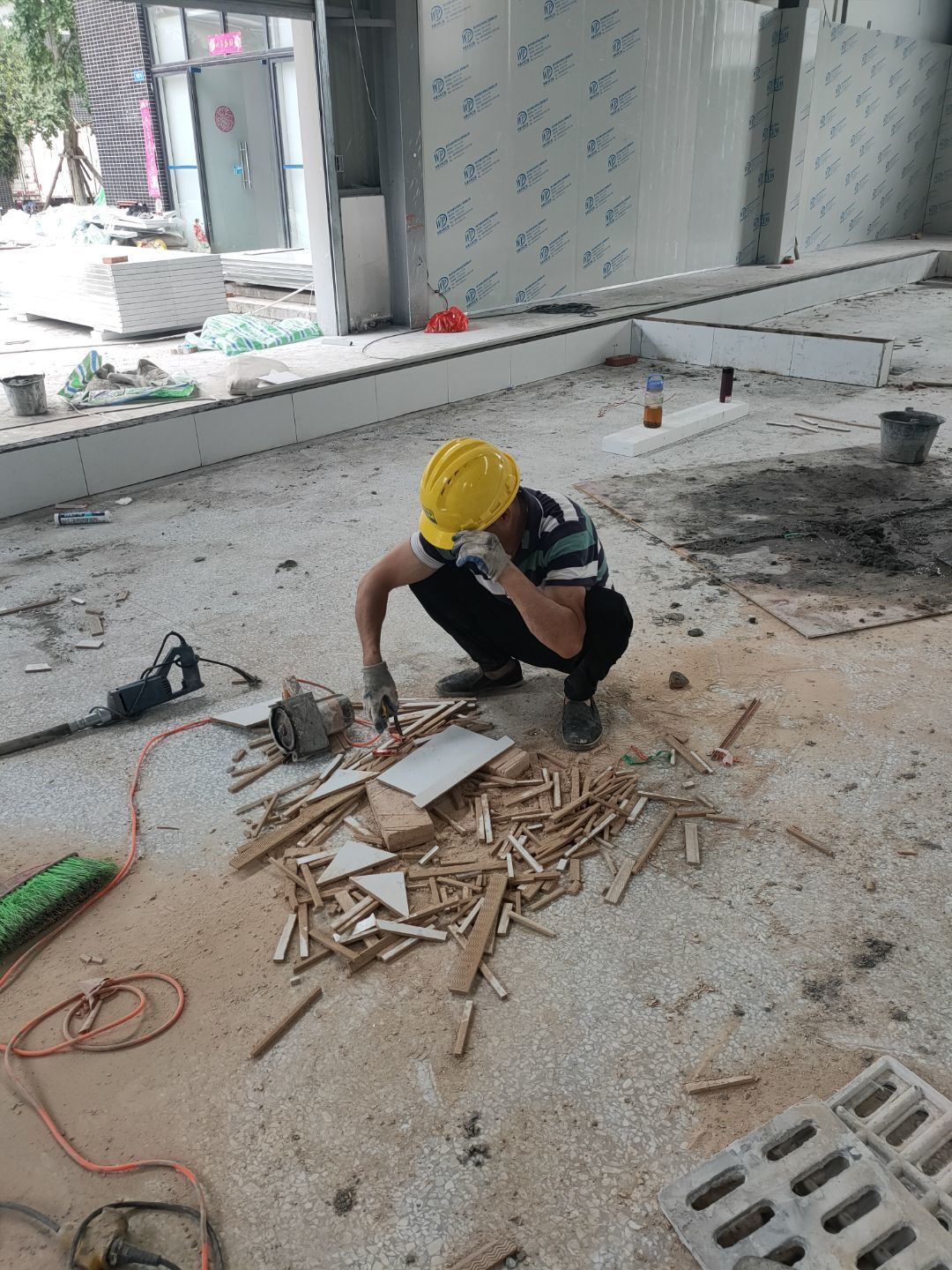 排水溝貼磚,隔斷施工