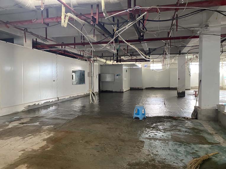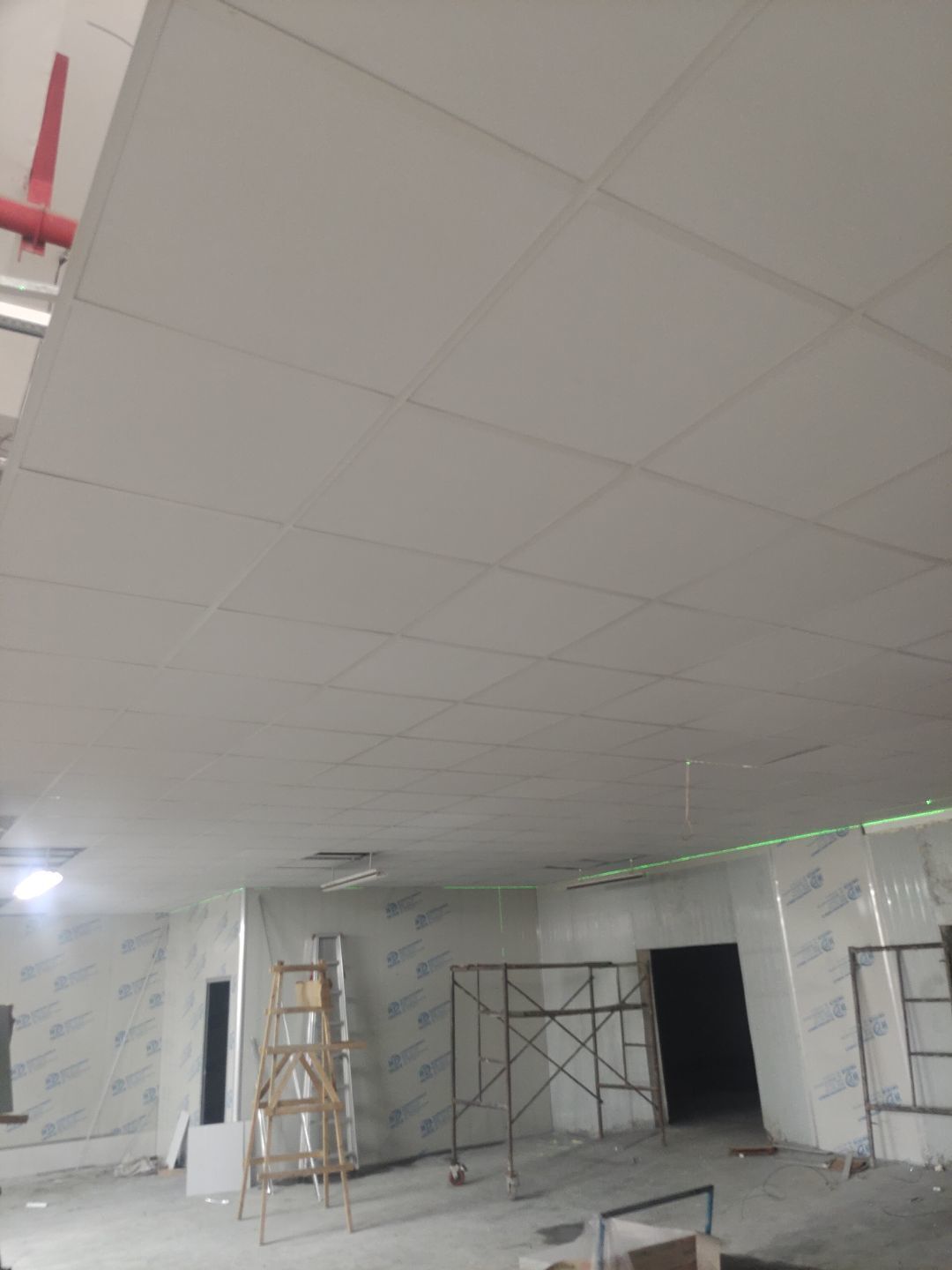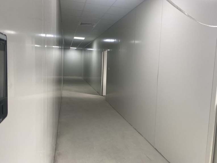 1、辦公司隔墻安裝完成,開(kāi)門洞及門制作安裝完成 2、外包間墻面板安裝完成90%,剩余部分甲方要求設(shè)備搬運(yùn)后安裝