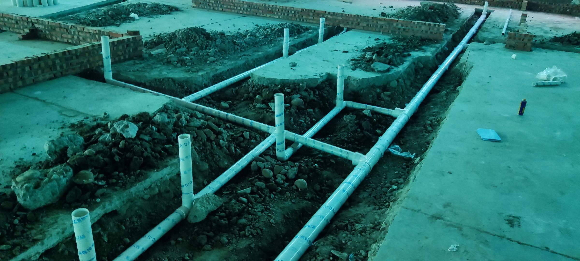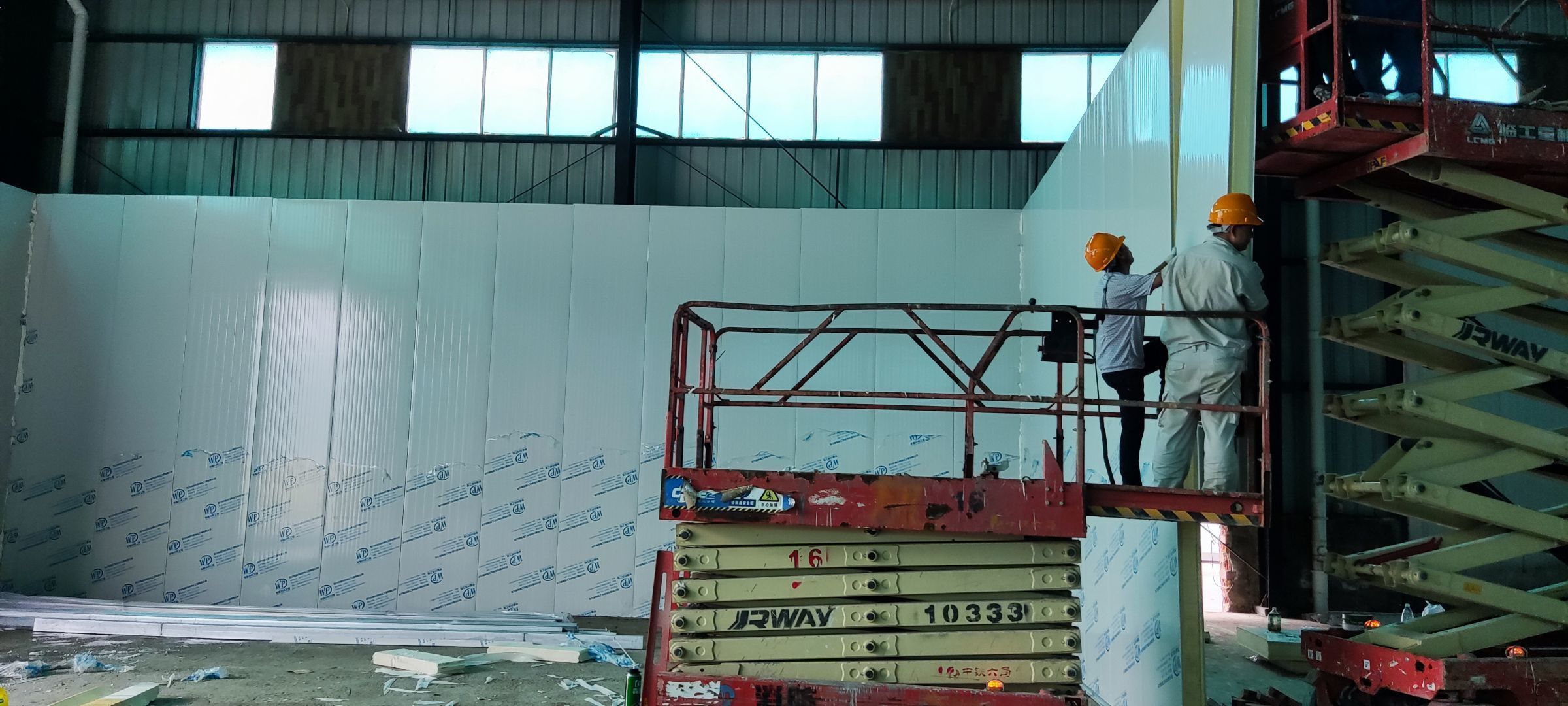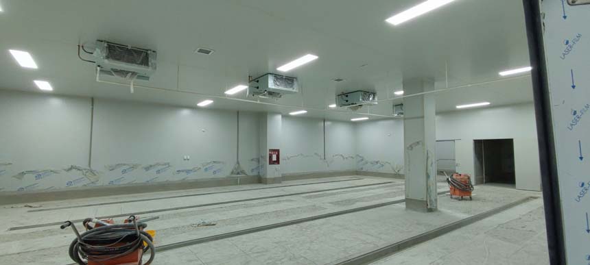 凍庫材料到場,排水管安裝,凍庫隔斷施工