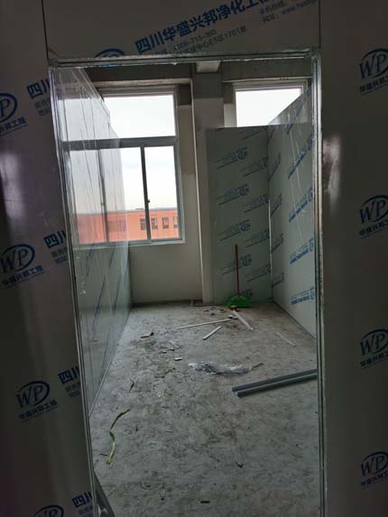 ①彩鋼墻板立板完成40% ②衛生間土建施工完成80% ③ 凍庫制作安裝完成80%