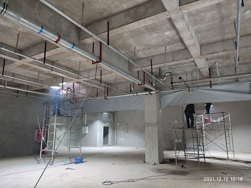 1,不銹鋼排水管安裝完成90% 2,空調水主管安裝完成70%