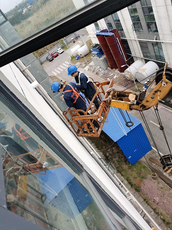 ①擋水墻主體施工第7天,完成擋水墻進度100%, ②今日進場打混凝土,第三天,完成打混凝土進度的100% ③擋水墻貼瓷磚完成 進度90% ④彩鋼板墻板二次轉運已全部上樓 ⑤彩鋼板施工第2天,完成進度20%