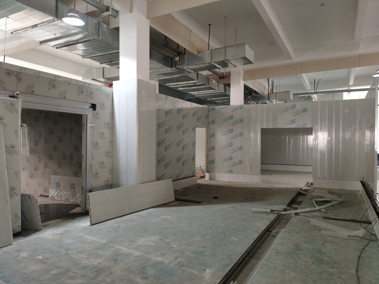 ①擋水墻主體施工第7天,完成擋水墻進度65%,擋水墻暫停進度,等待下一步工藝進行 ②防水進場施工第15天,防水進度完成100% ③排水管師傅進場施工第10天,室內排水管及排水點位完成100%室外排水管完成進度100% ④室內排水暗管找坡完成進度100% ⑤凍庫防水完成100% ⑥發泡混凝土進場施工第5天,進度完成100% ⑦等待黃色預警解出通知,準備下一歨工藝流程