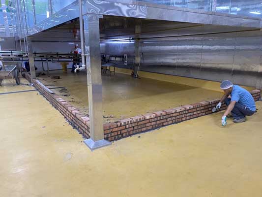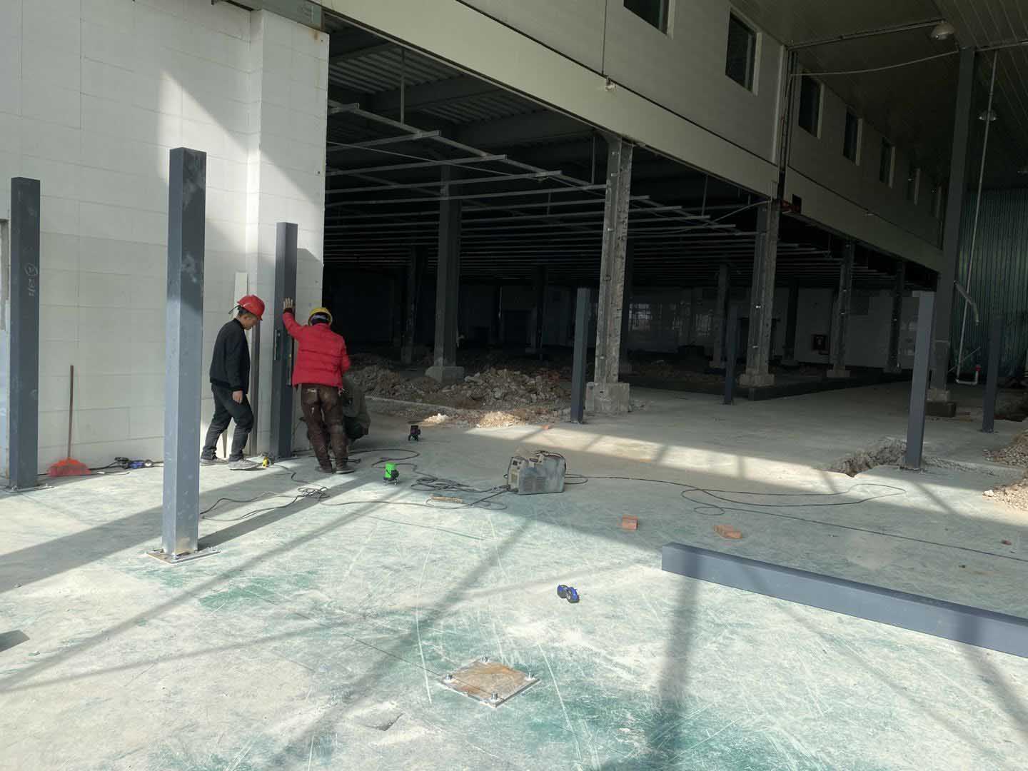 1、三車間環(huán)氧地坪超耐磨面層施工完成、二車間增加環(huán)氧地坪工程量打磨和底涂施工; 2、增項彩鋼隔墻板施工、門安裝; 3、風機電源接駁、排氣扇波紋管更換安裝; 4、土建擋水墻、門洞貼磚勾縫