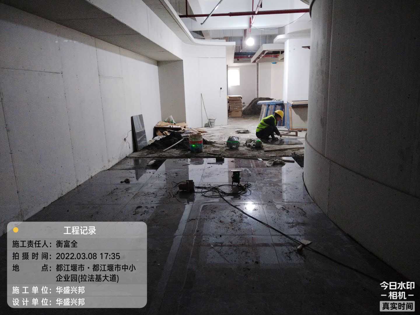 今日施工內容 1,電工收尾 2,漆工嵌縫 3,鋪貼墻地磚 4,衛生間避水實驗