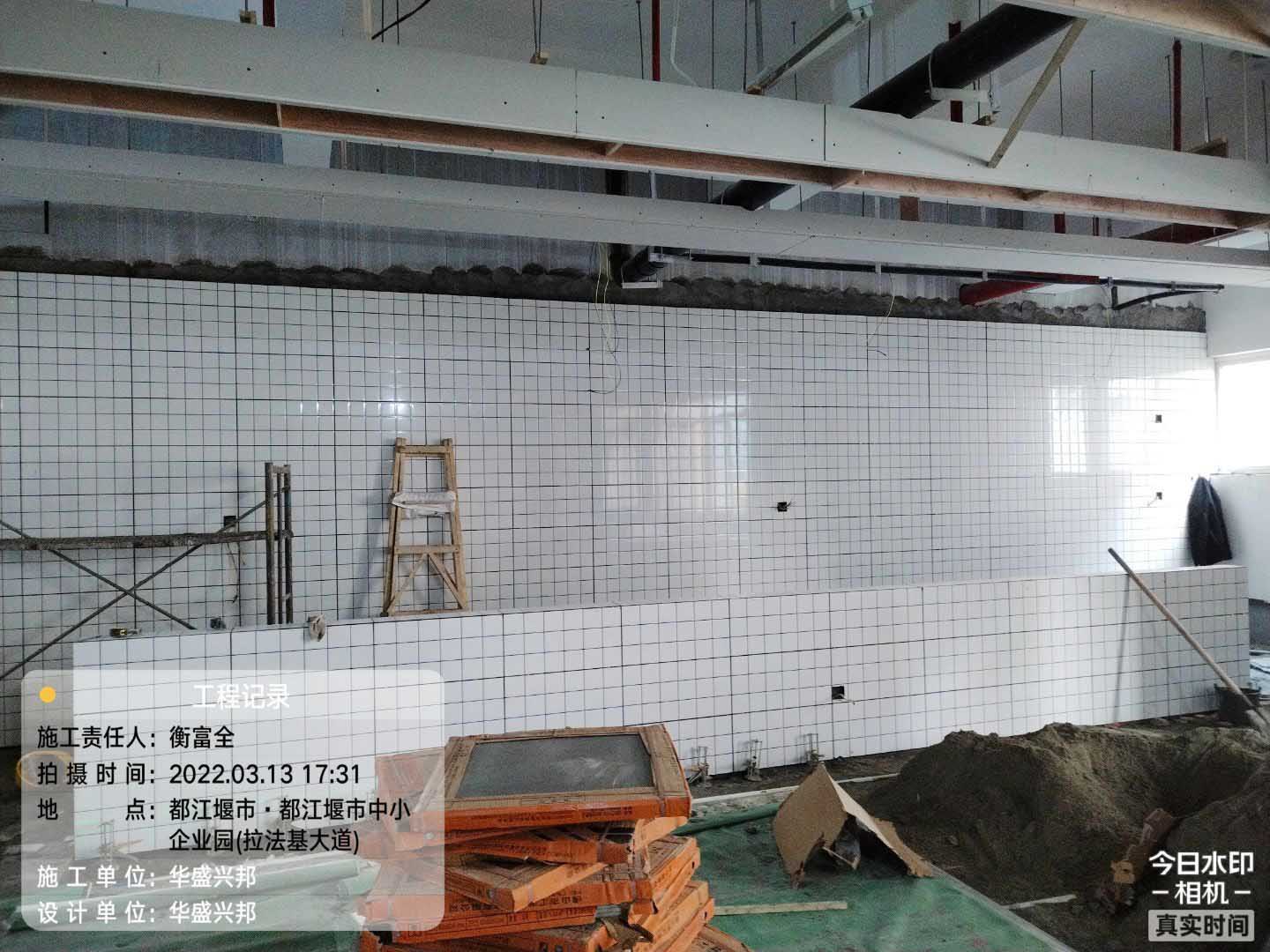 今日施工內容 1,燈具安裝 2,衛生清理 3,窗簾,軟膜測量 4,油炸車間改造 今日材料進場 無 四、明日施工計劃. 1,燈具安裝 2,衛生清理 3,油炸車間改造施工 4,不銹鋼安裝 遺留問題