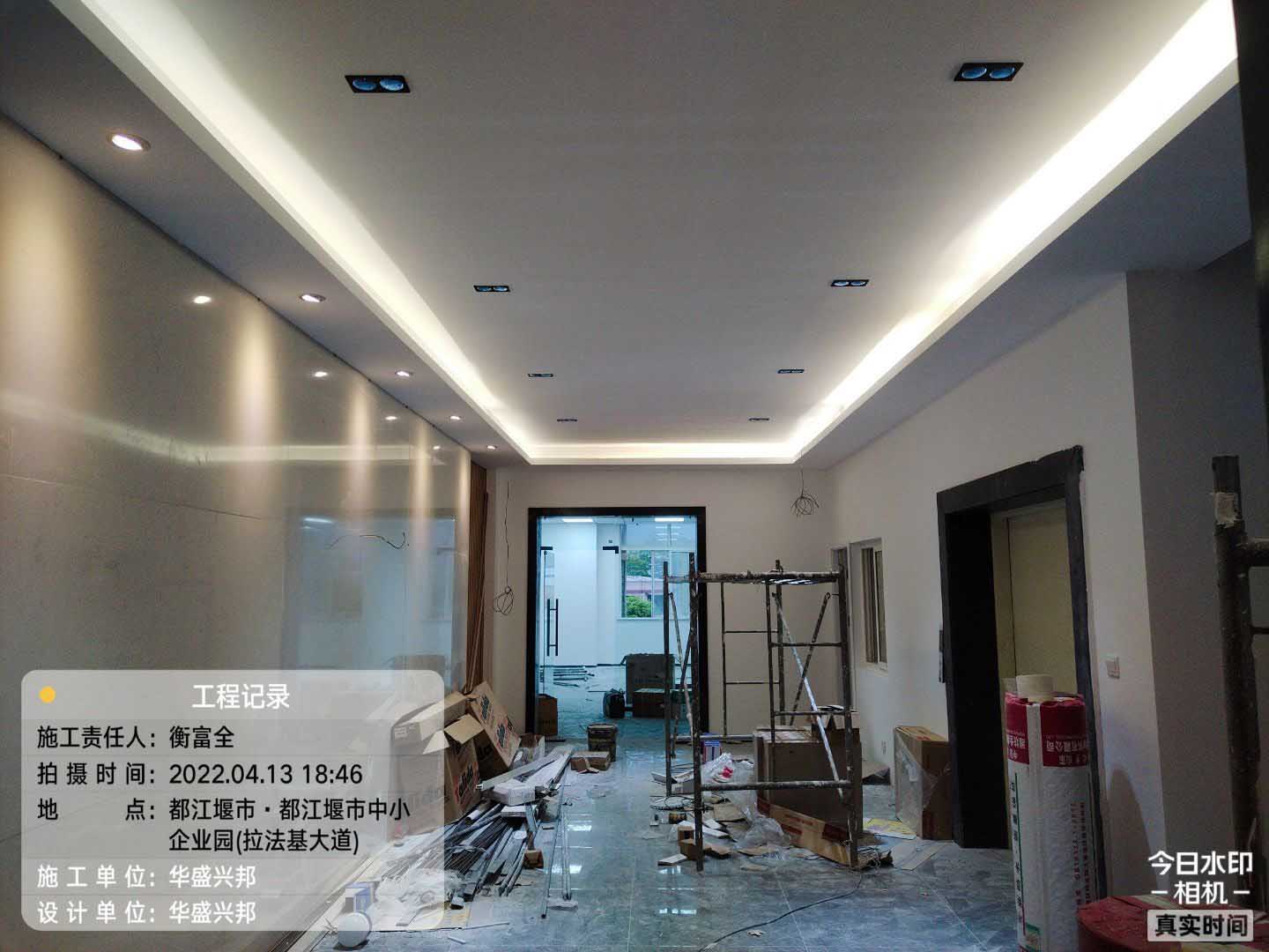 今日施工內容 1,地磚勾縫 2,樓板吊頂施工 3,漆工收尾 4,燈具安裝 5,木門,鈦合金門安裝