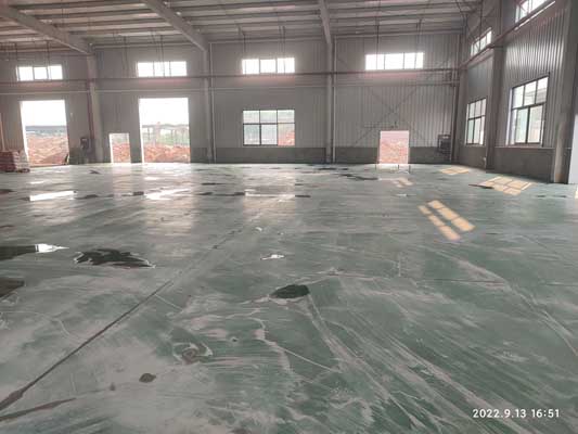 1、金剛砂收面完成 2、擋水墻砌筑完成60% 3、彩鋼板到場15%