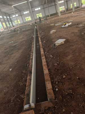 1,排水明溝底部瓷磚完成75% 2,混凝土及金剛砂收面完成25%