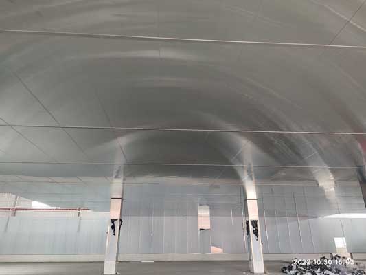 1、彩鋼板累計到貨14800㎡,隔墻及吊頂安裝完成約13500㎡; 2、地面密封固化完成80%; 3、空調水管道安裝完成30%,風管安裝完成50%; 4、照明燈具安裝完成25%、線路敷設完成15%。