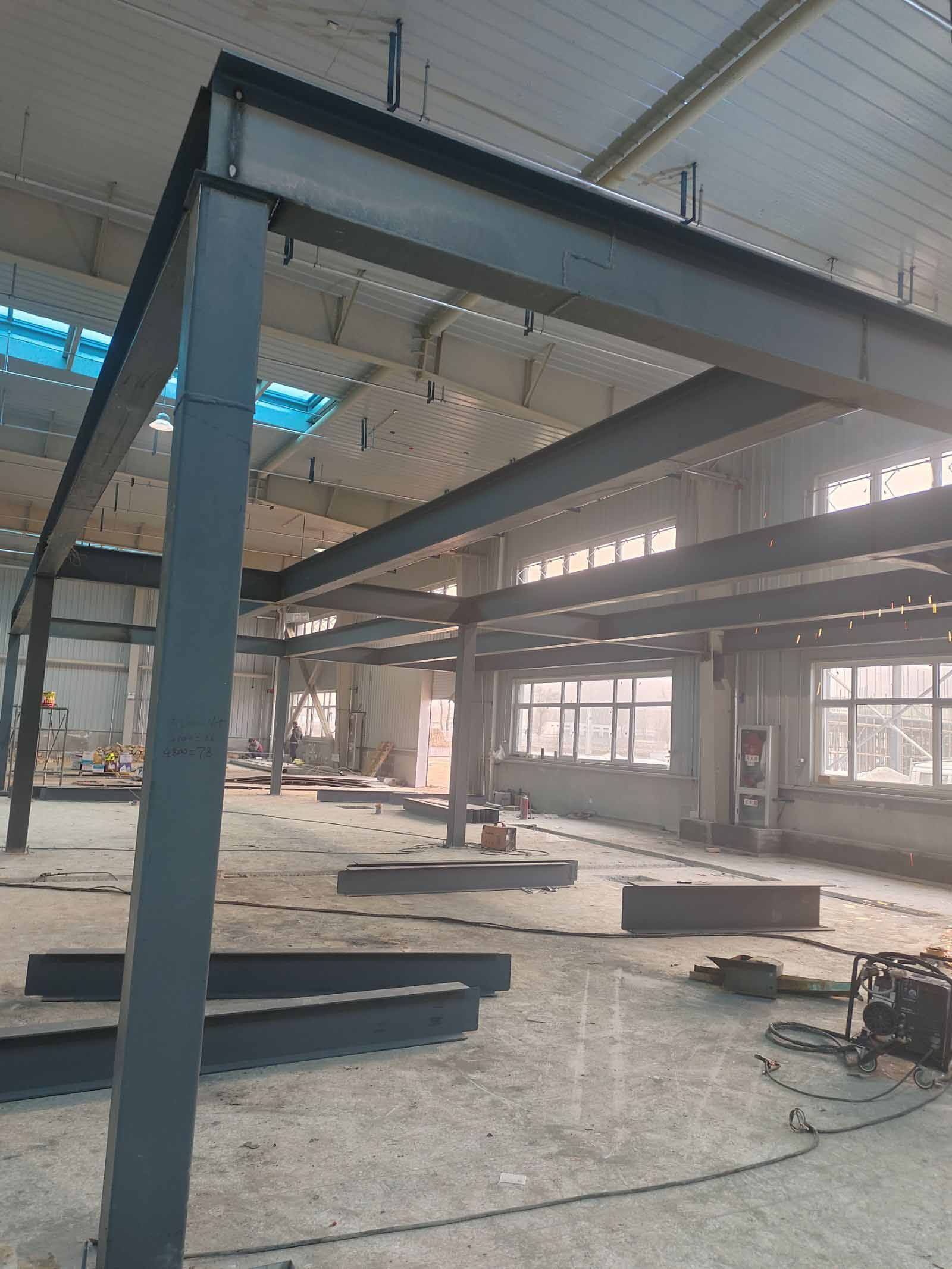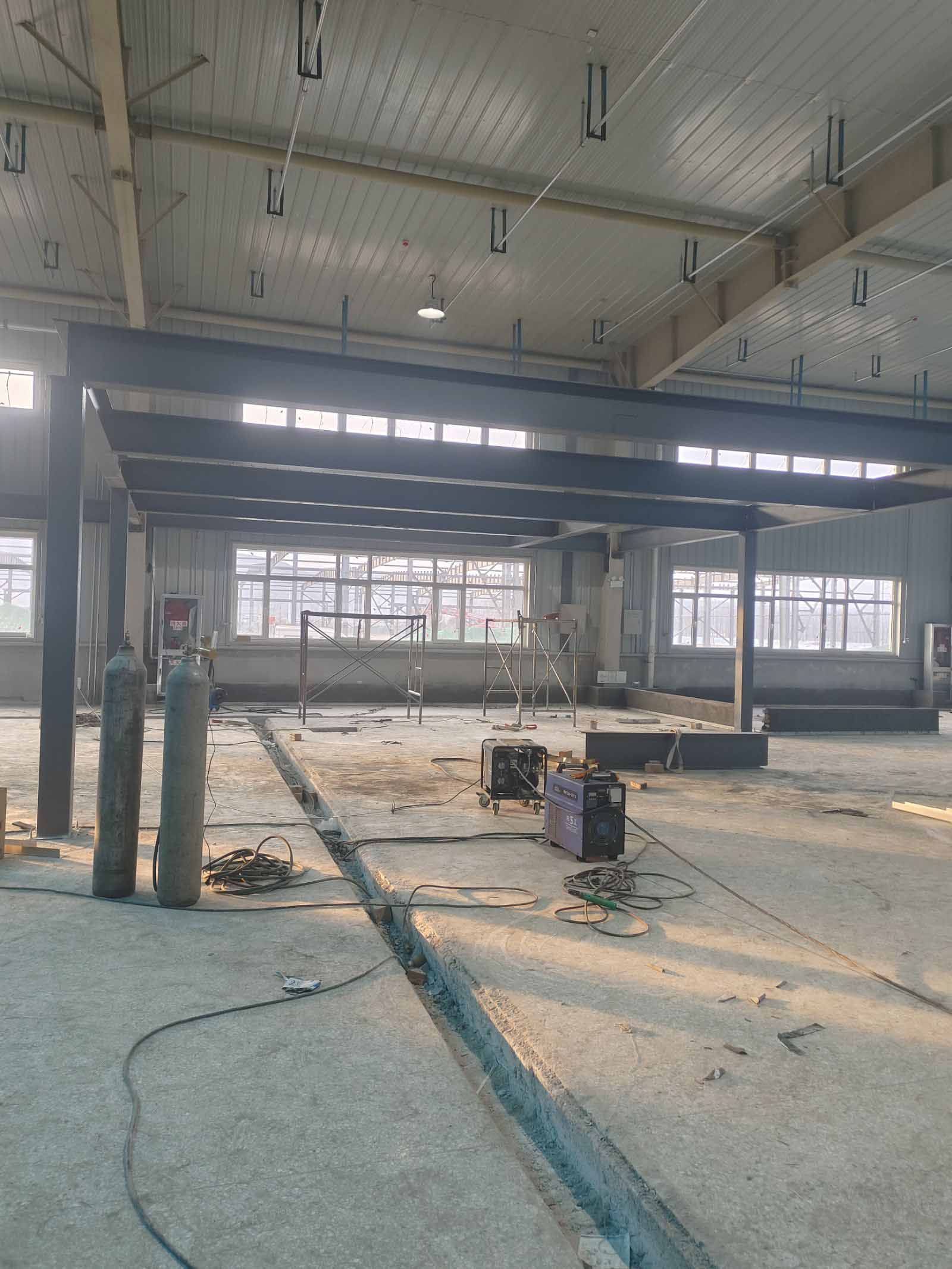 鋼構材料到場,開始焊接二層平臺