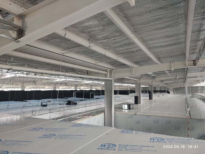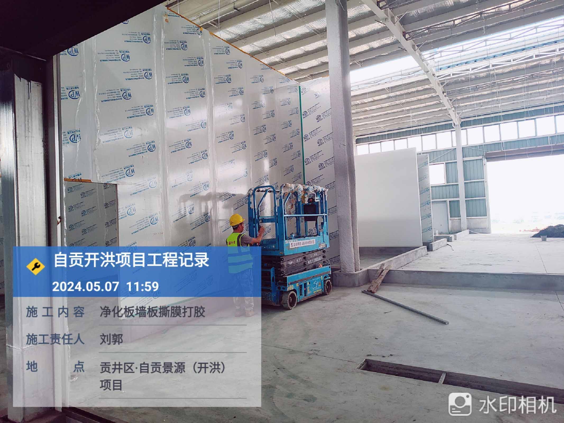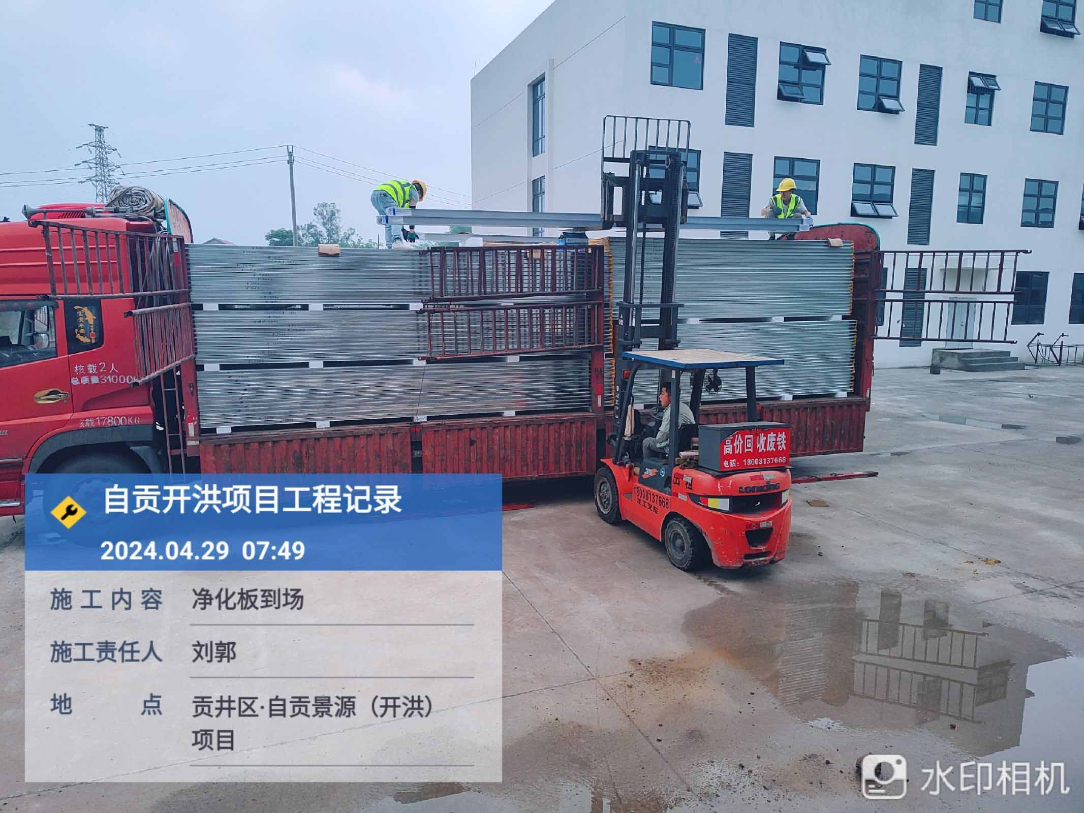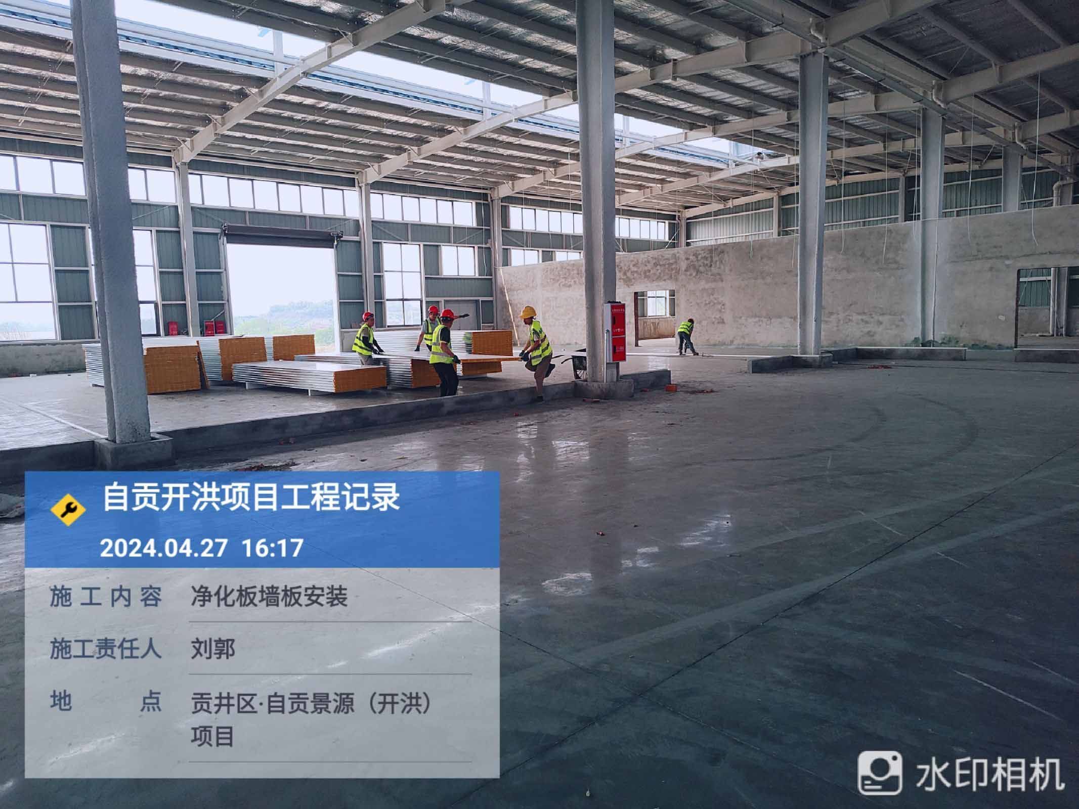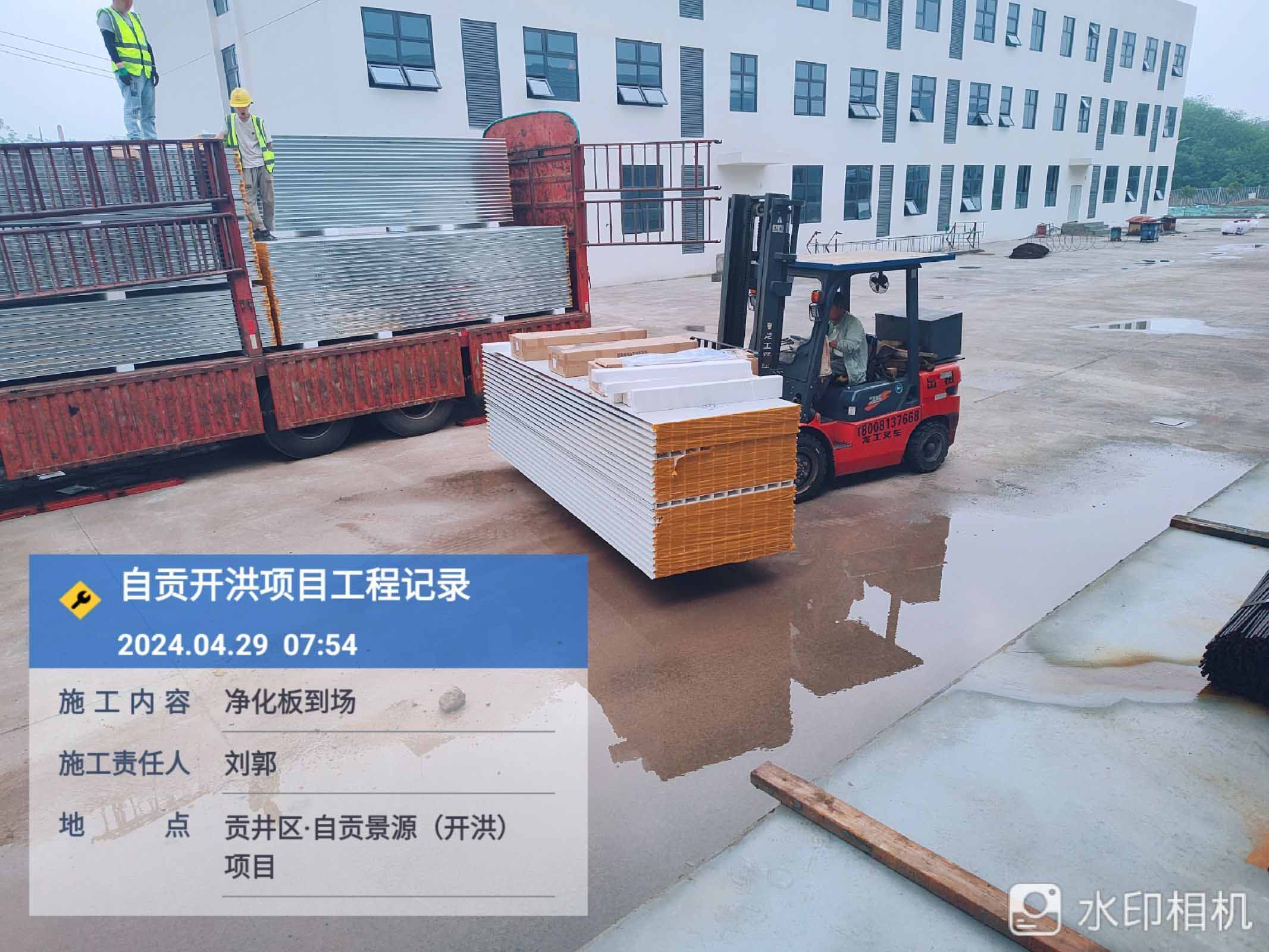 1、參觀走道鋼柱擋水墻砌筑抹灰完成80% 2、進化板吊頂安裝 3、凈化板墻板安裝 4、到場凈化板及鋁材卸貨