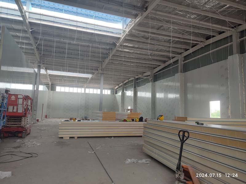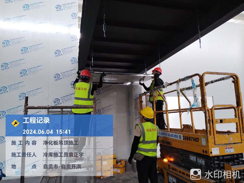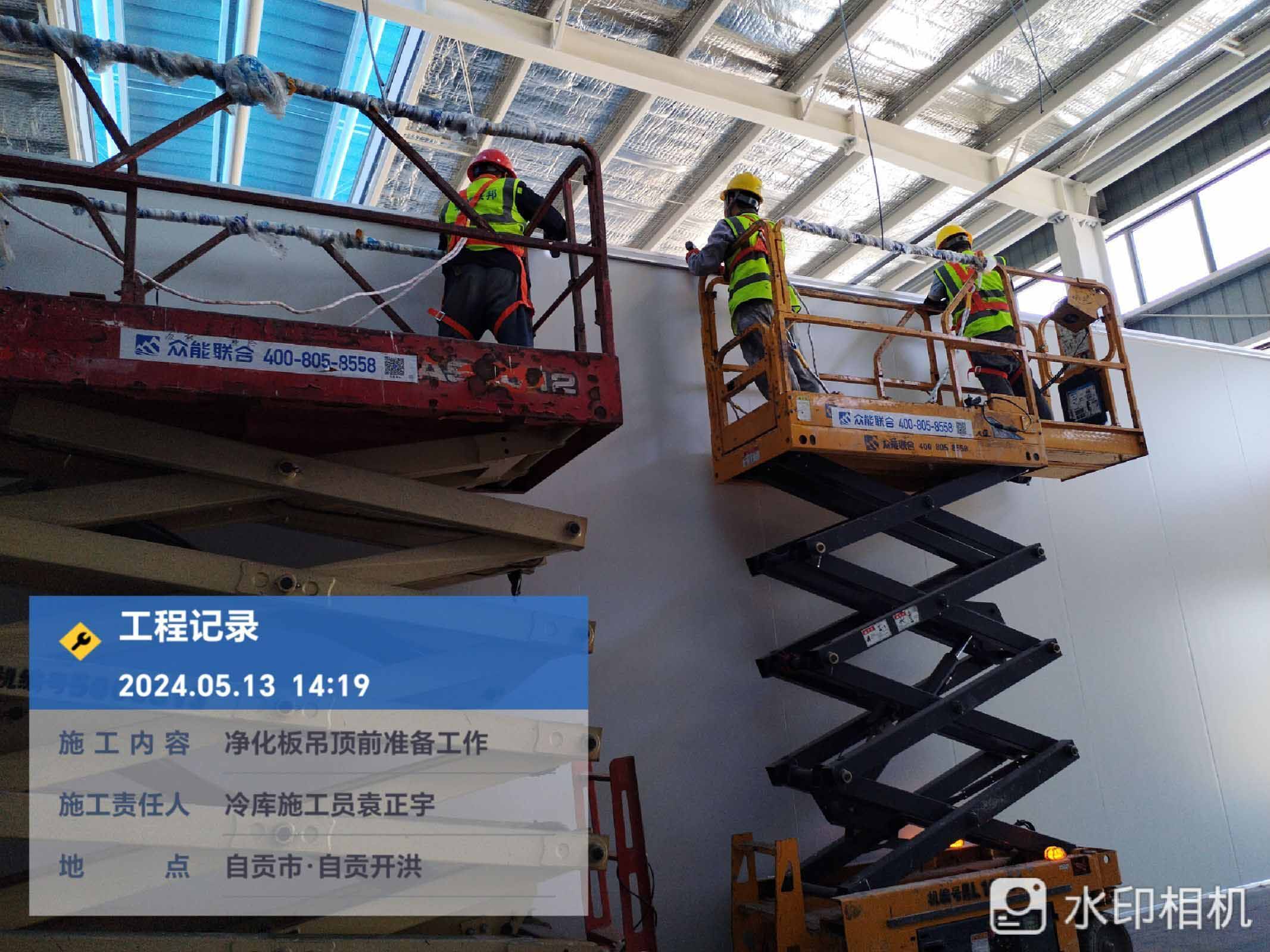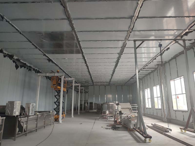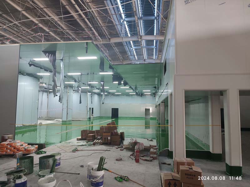 1、凍庫保溫板吊頂加固 2、聚氨酯擋水墻上墻 3、煮制間煙罩組裝 4、凍庫包柱 5、參觀通道通玻樣品下單 6、凍庫剪刀撐包柱施工
