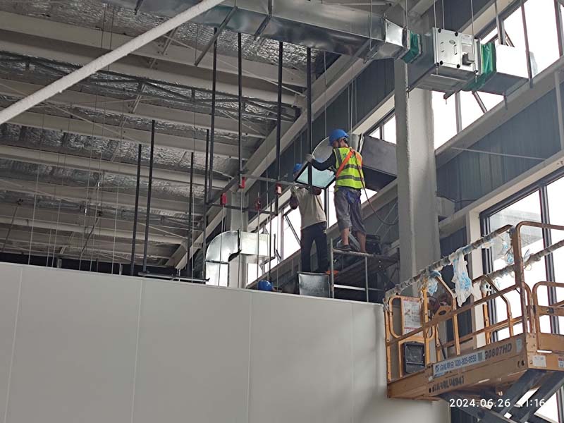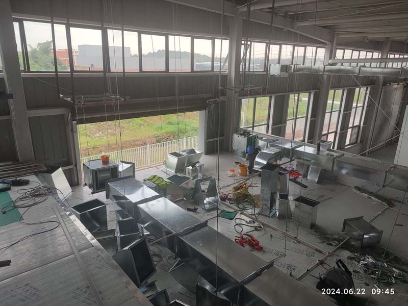 風(fēng)管材料到場 設(shè)備地坪施工 戶外土建部分施工